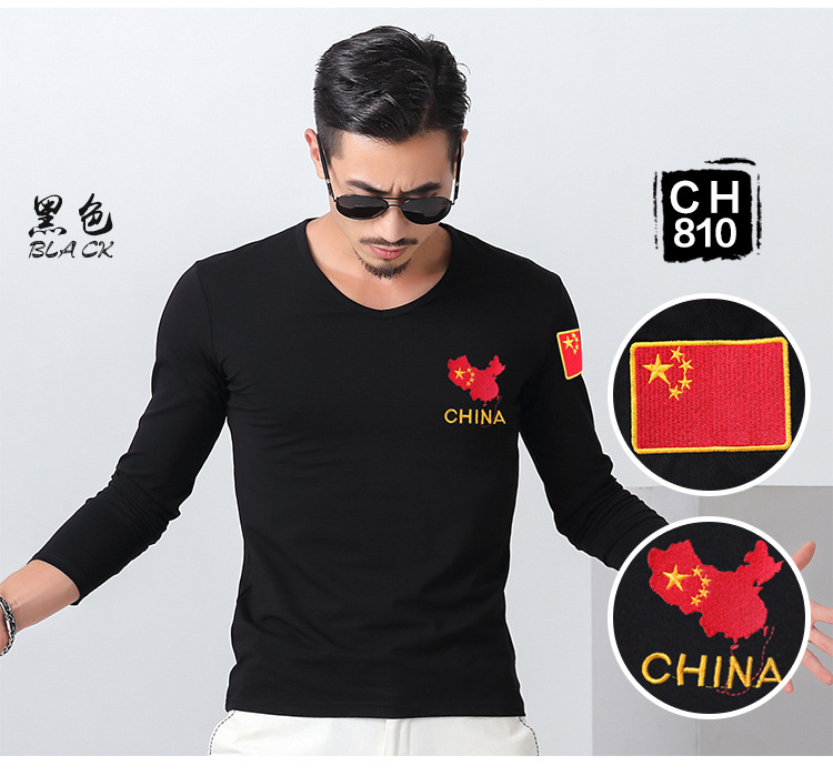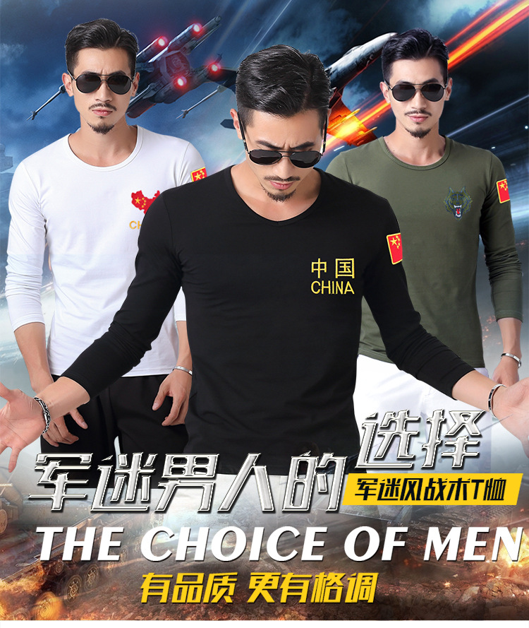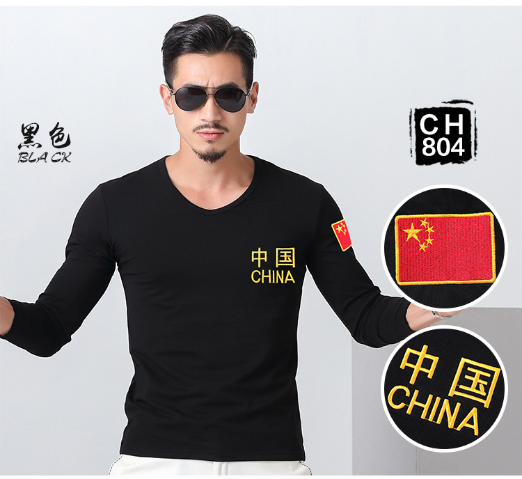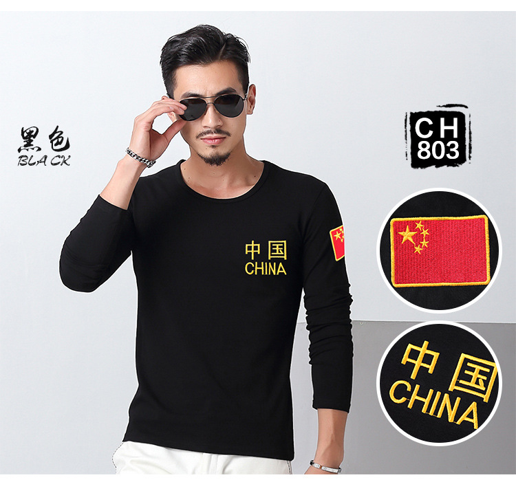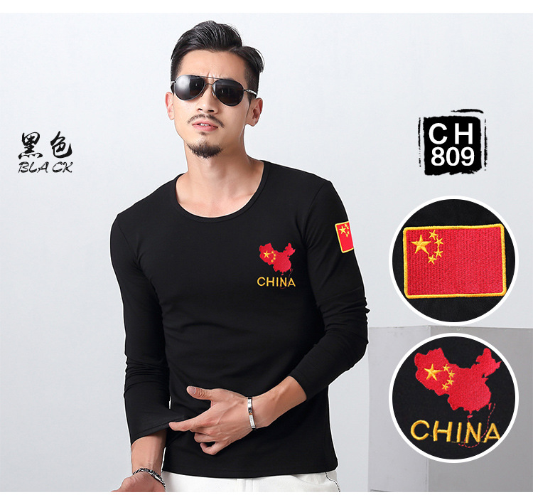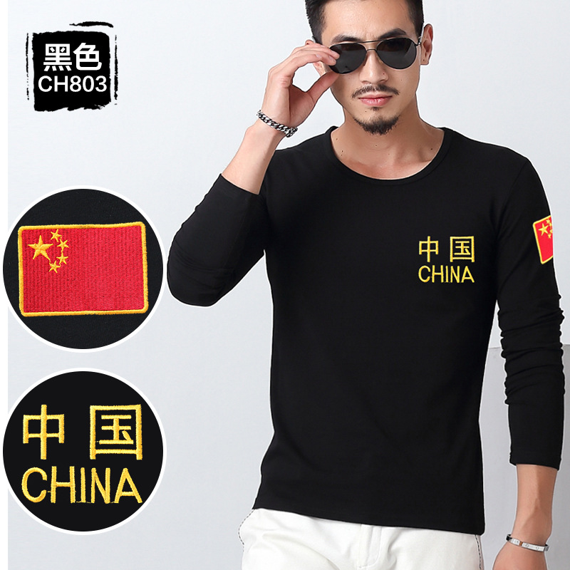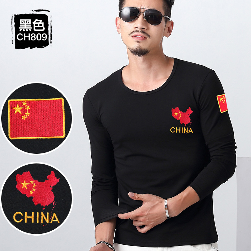 가을 자수 중국 슬림 핏 육군 팬 늑대 머리 물리적 긴 소매 티셔츠 바디 남성용 기본 도매 판매스토어 가기