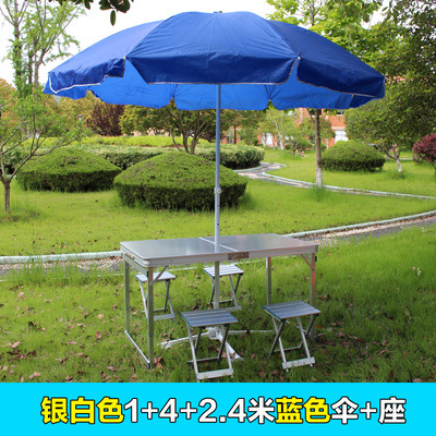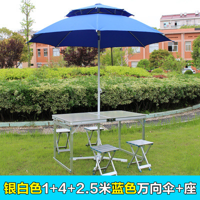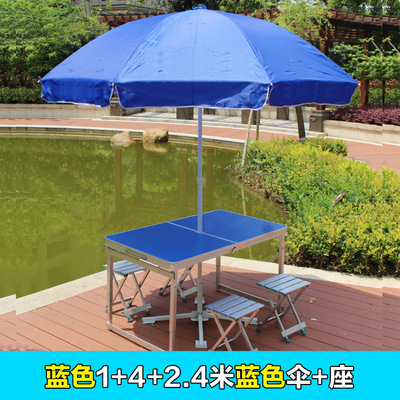 • 은백색 테이블, 스툴 4개 + 2.4m 올블루 우산 + 우산 앉기