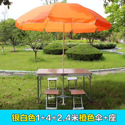 • 은백색 테이블, 스툴 4개 + 주황색 우산 2.4m 개 + 우산 앉기