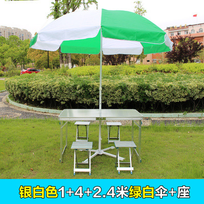 • 은백색 테이블, 스툴 4개 + 녹색 및 흰색 우산 2.4m 개 + 우산 시트