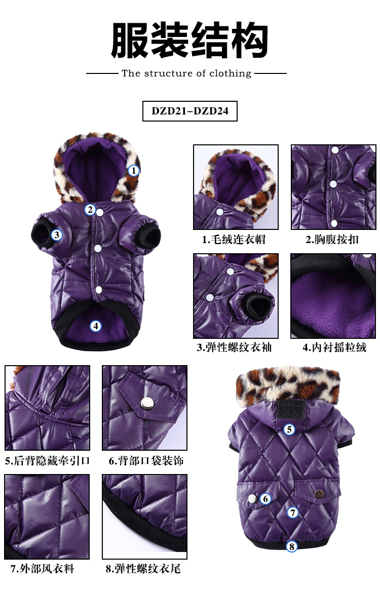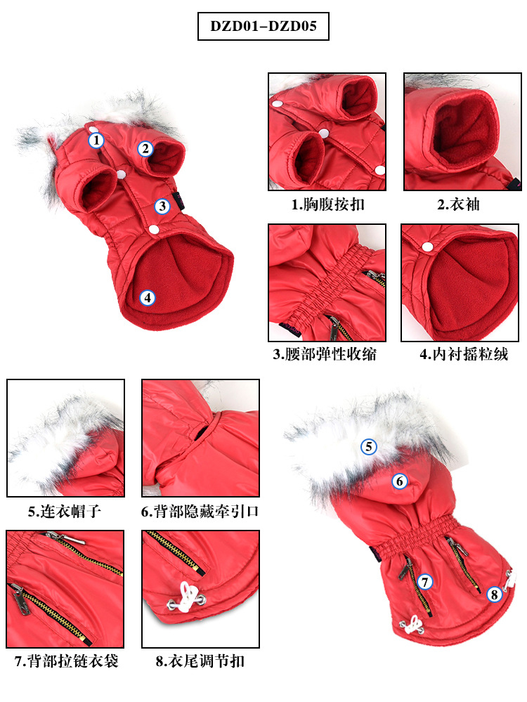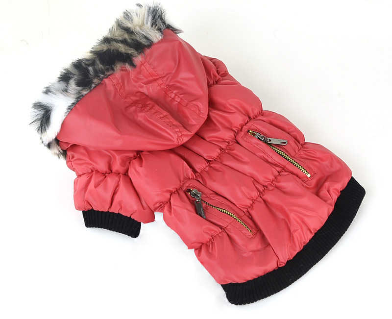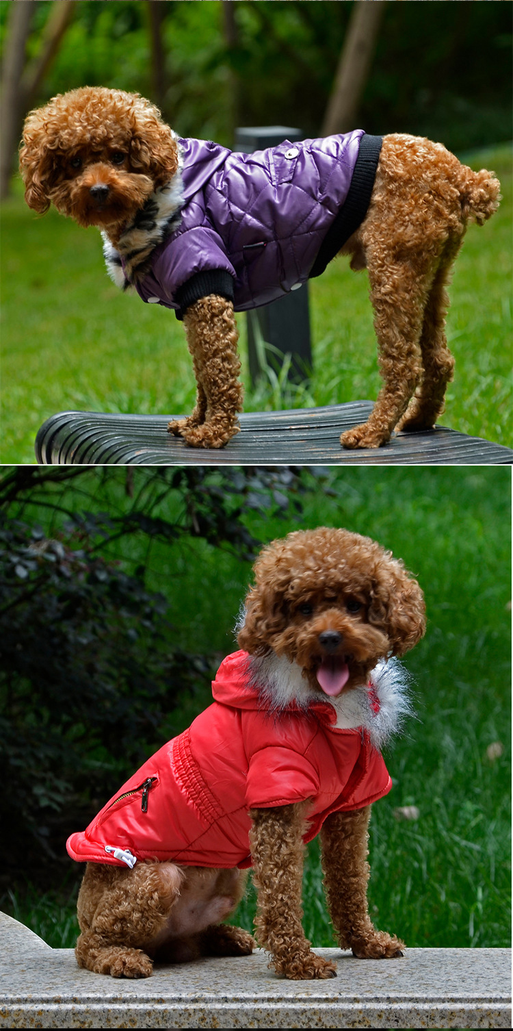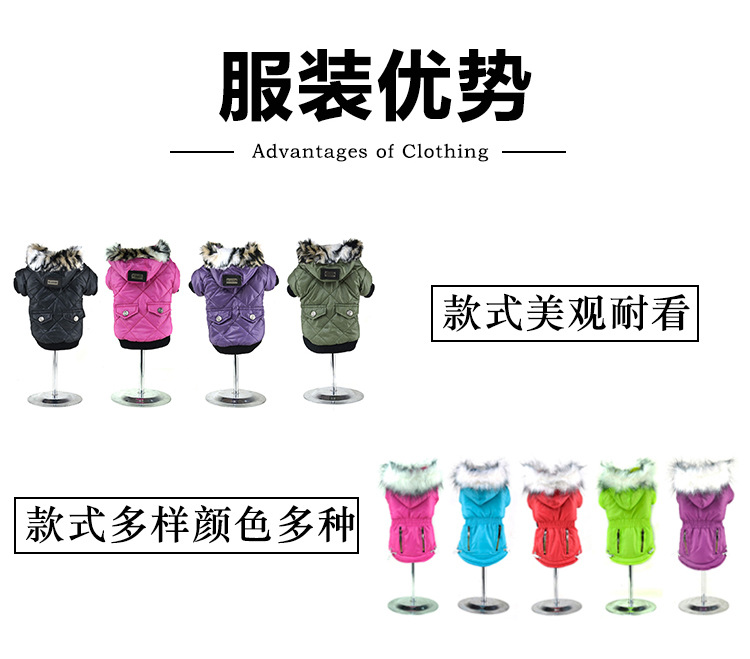 크로스보더 따뜻한 가을 겨울 의류, 모피 칼라가 달린 대형견 코트, 방풍 폴라 플리스 안감 후드 애완동물 옷스토어 가기