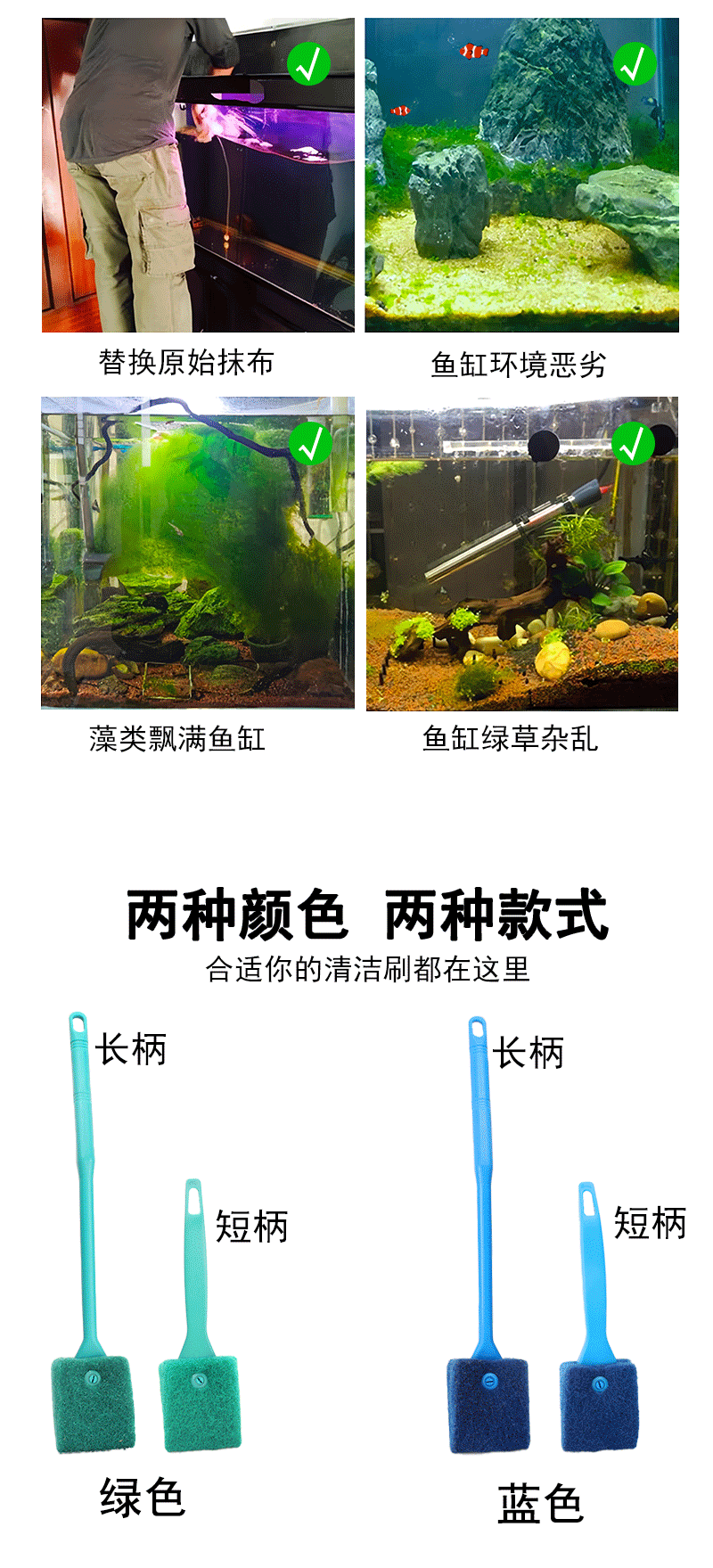수족관 브러시 유리 브러시 생선 탱크 청소 도구 어항 브러시 긴 핸들 어항 브러시 연장 어항 유리 브러시