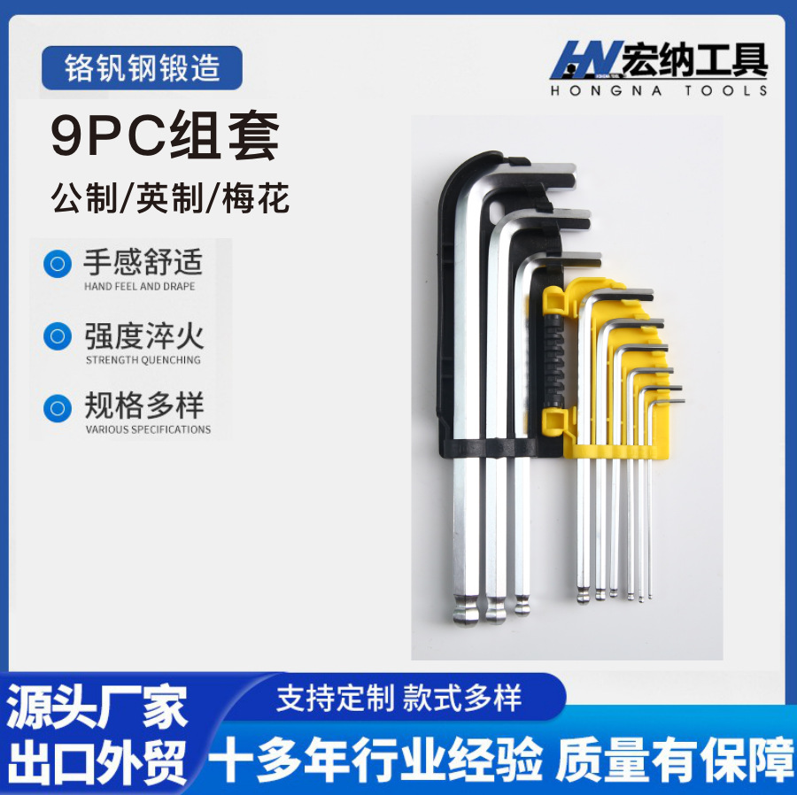 9pc 연장 매트 미터법 볼 보우 보트형 플라스틱 클립 알렌 렌치 L형