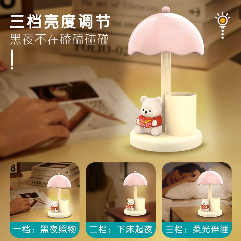 귀여운 만화 귀여운 곰 인형 데스크탑 작은 미니 충전식 테이블 램프 어린이 침실 야간 조명 도매 선물