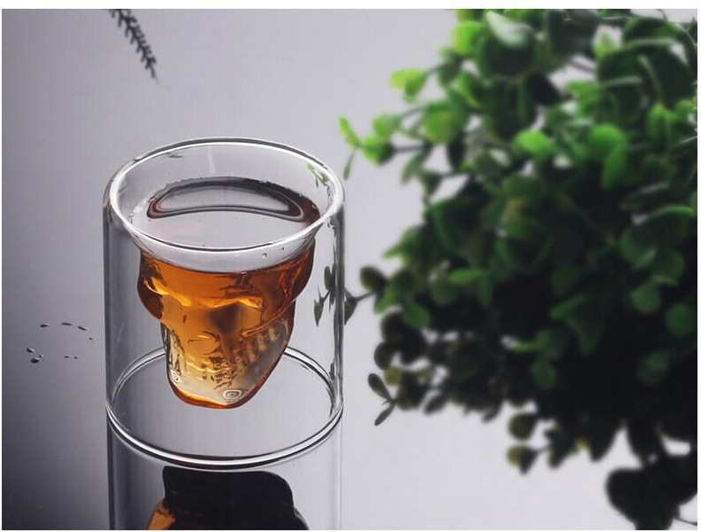 도매 유리 와인 잔 가정용 물 컵 유리 국경 더블 레이어 해골 컵 안티 가을 고가 컵 스타일스토어 가기