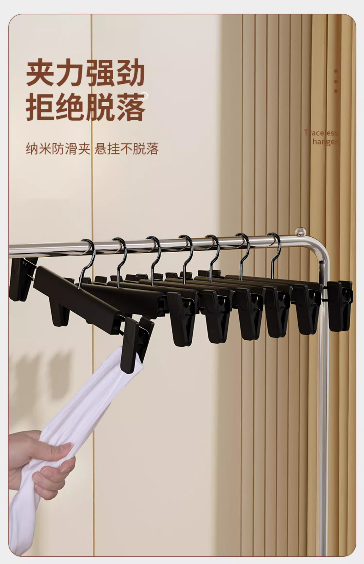 의류점 플라스틱 바지 랙 성인 가정 미끄럼 방지 텔레스코픽 블랙 라운드 후크 젖빛 강한 바지 교수형 공장 직도매스토어 가기