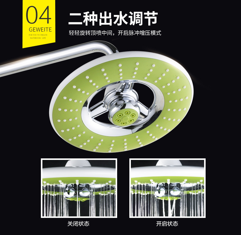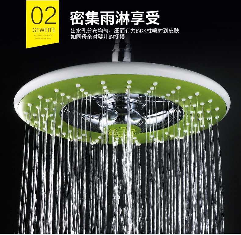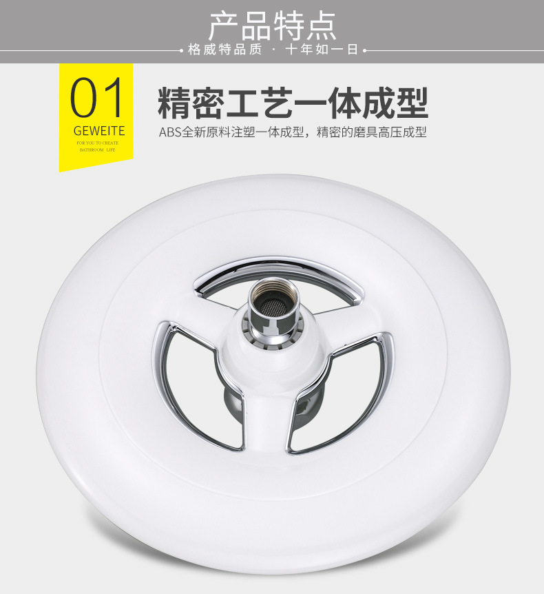 佳盛淋浴花洒 淋浴花洒创新三功能转换阀芯,让功能切换简单操作,识别清晰、一键到位;出水口与开关的平行设计既满足了东方人的审美观点,又将其独特的设计显现的淋漓尽致。在您使用的同时,更会为您增加一份美的感受。超大顶喷花洒及精美手持花洒都可作自由升降,万向旋转,这样多功能的设计更会您的生活带来了便捷与舒适。