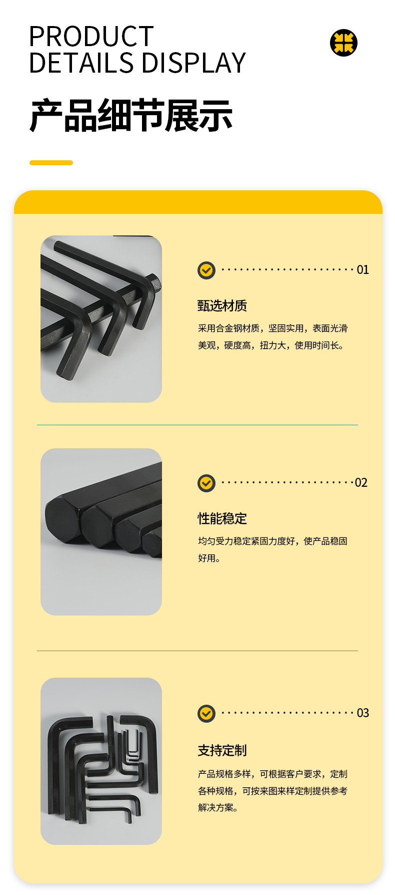 준누오 공구는 3-55mm 흑색 니켈 도금 평평한 짧은 육각 렌치를 공장 직판하며, 니켈 도금 공정을 제공합니다.스토어 가기