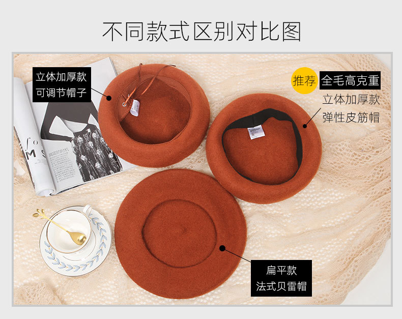 [성인 플랫] 가을 겨울 울 레트로 니트 트렌디 베레모 페인터 모자 모직 베레모 여성 모자스토어 가기