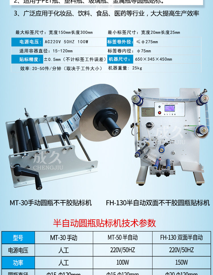 型号:MT-130半自动圆瓶不干胶双面贴标机