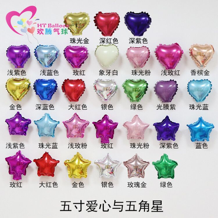 【产品名称】5寸:爱心, 五角星 铝膜气球