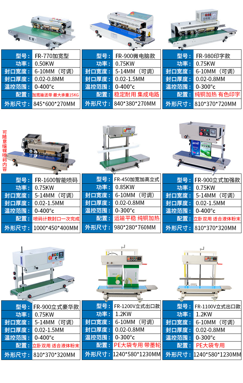 • 수출, FR-1100V 핸드 크랭크 수직 밀봉 기계