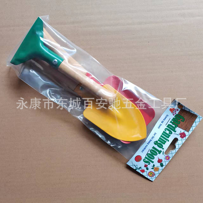 공장 직접 색상 어린이 나무 손잡이 꽃 삽 세트 해변 삽 다육 심기 삽 포크 갈퀴 정원 도구스토어 가기