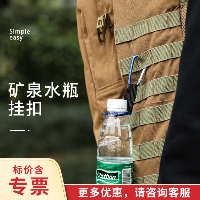 [特点]:用来挂矿泉水瓶的快挂扣件,方便实用,可以挂在背包上,也可以挂在裤带上. 瓶扣扣住瓶颈后,纹丝不动,不会掉