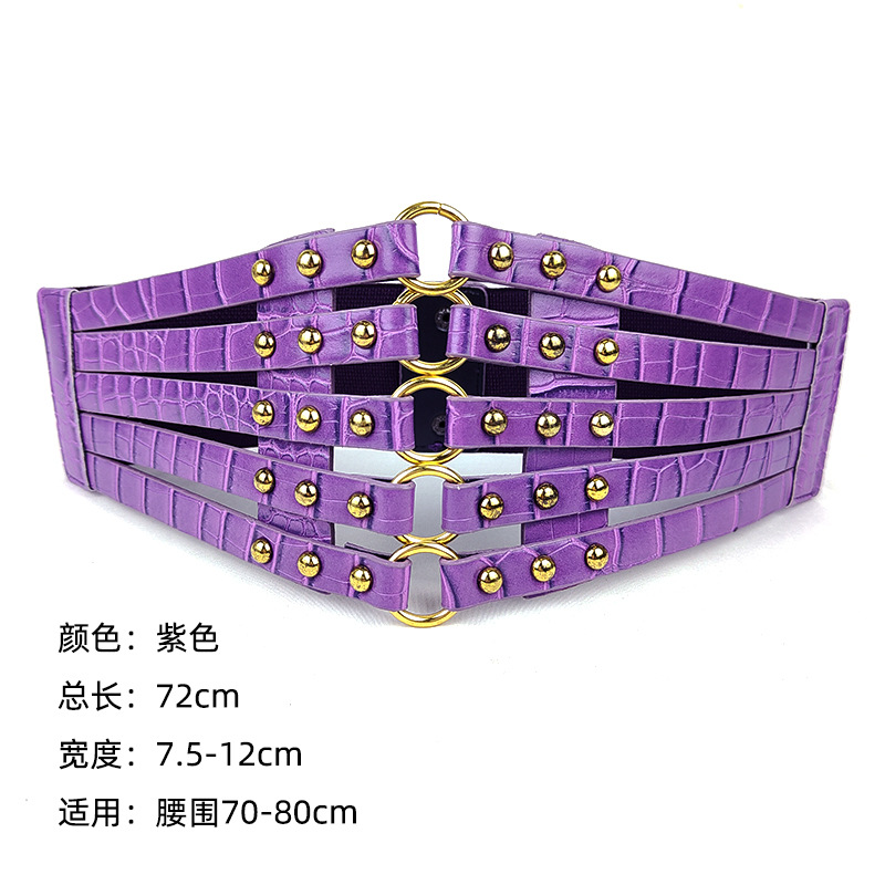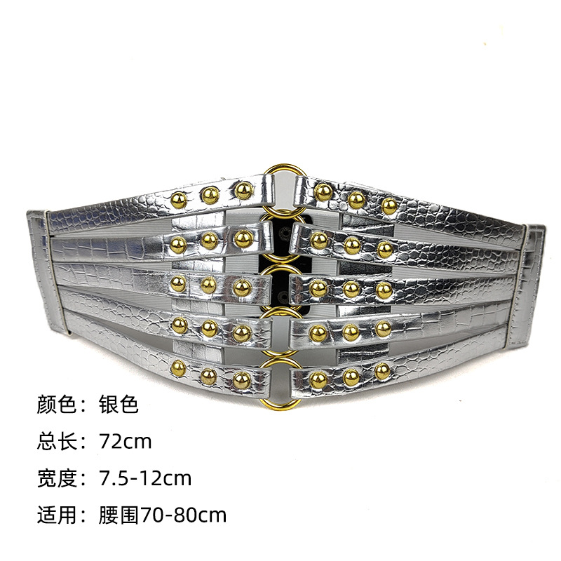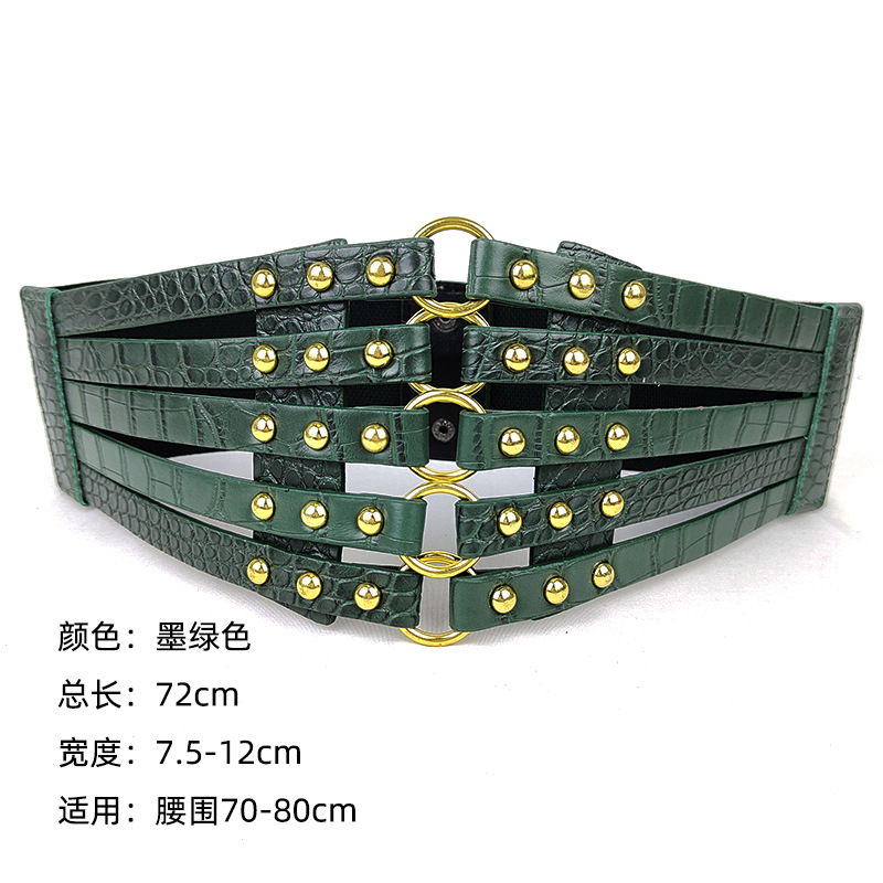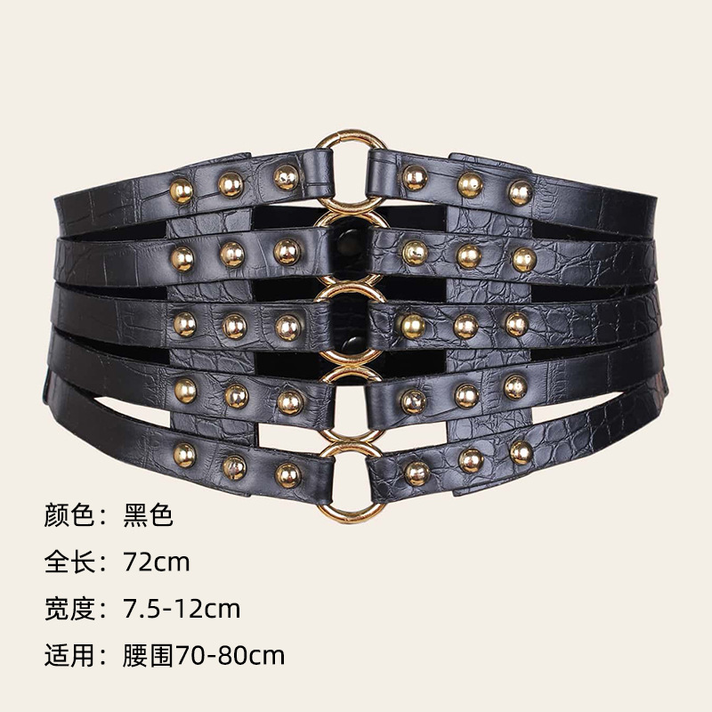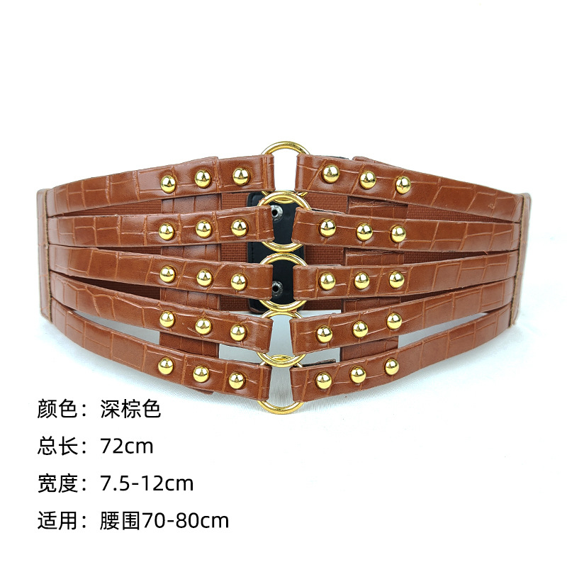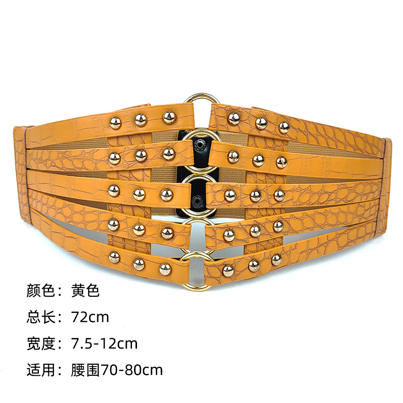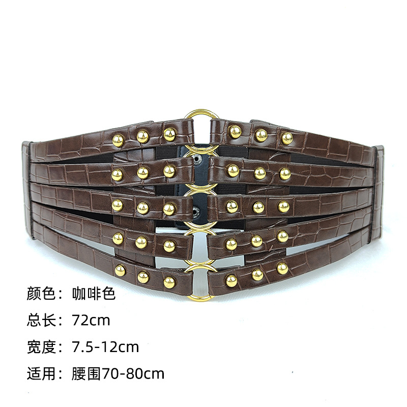 유럽과 미국 패션 레트로 중공 리벳 탄성 와이드 허리 씰 여성의 모든 매치 다운 재킷 장식 스커트 링 벨트스토어 가기
