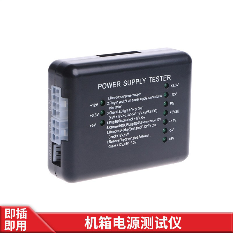 此新款ATX电源测试仪可以测试:4PIN/6PIN/8PIN, HDD电源接口/SATA电源接口, FLOPPY