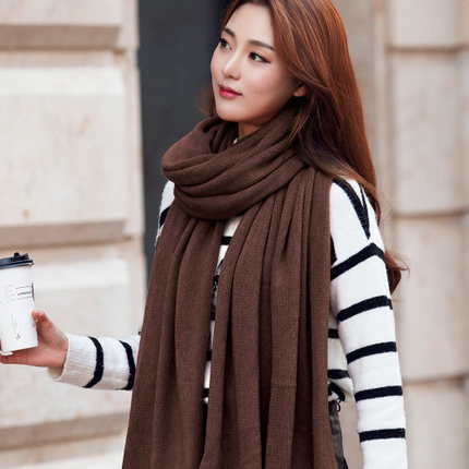 단색 양모 스카프 한국 가을과 겨울 숙녀 에어컨 목도리 이중 목적 니트 연장 두꺼운 한국 스카프 도매스토어 가기