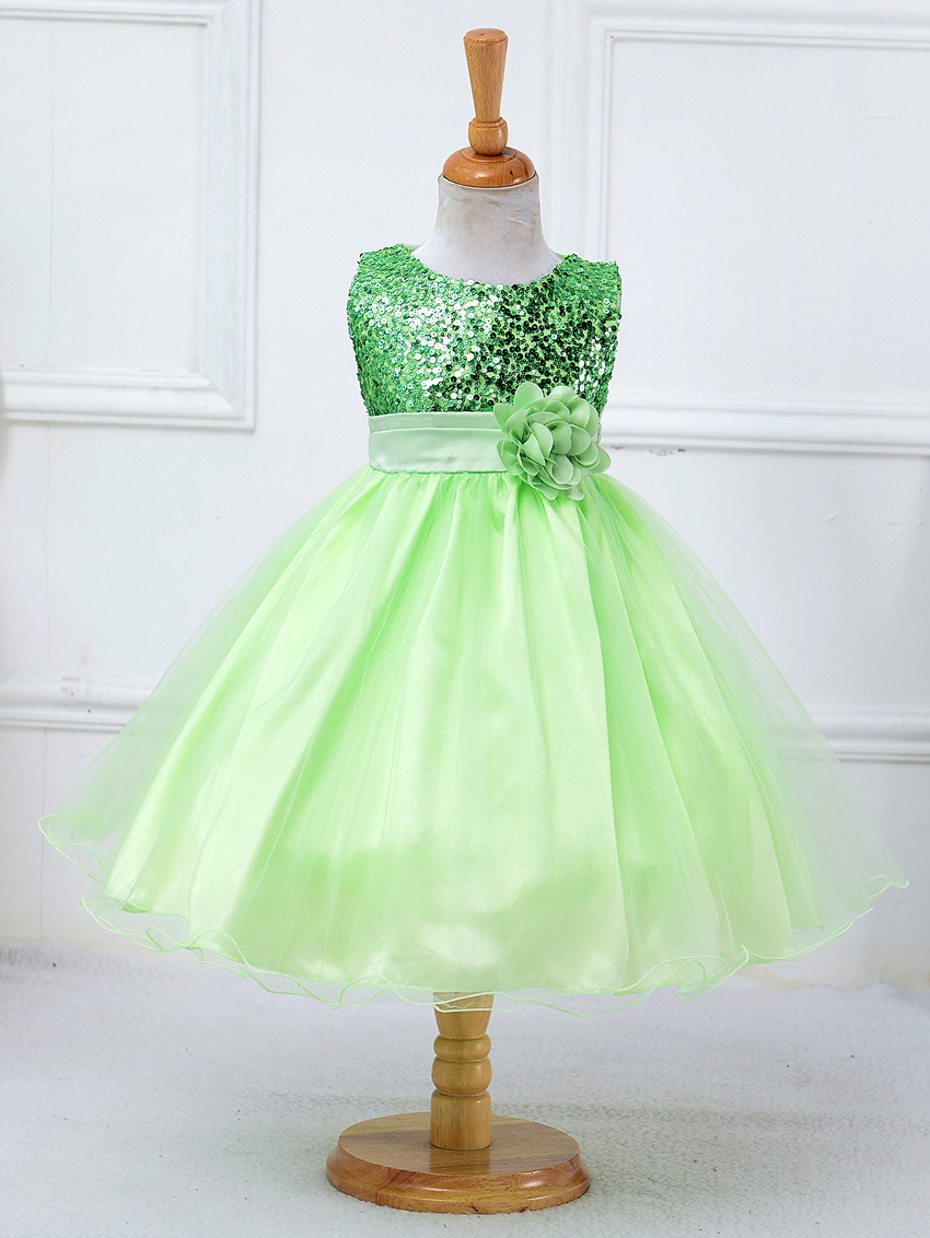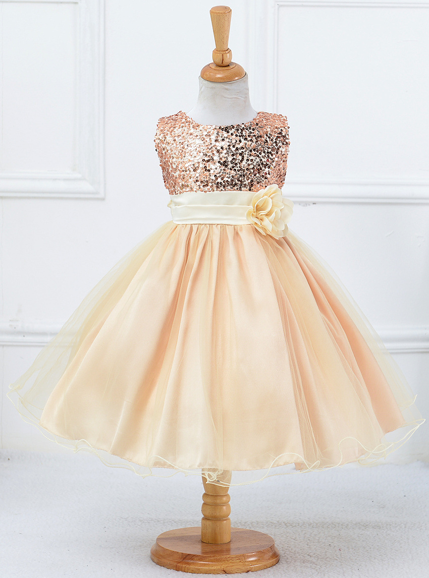 儿童礼服公主裙欧美花童亮片蓬蓬裙表演走秀服女童拖尾连衣裙现货