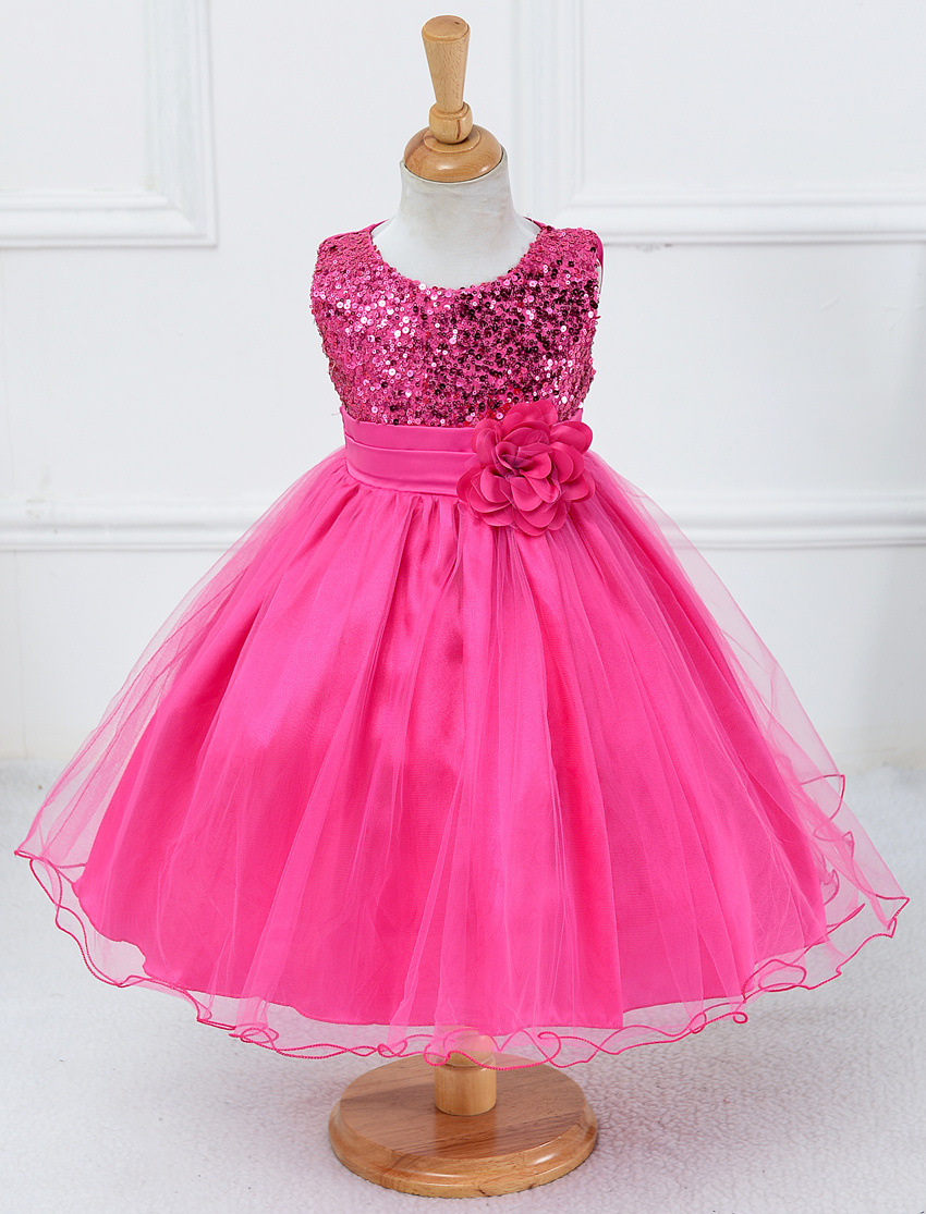 亚马逊儿童礼服长款女童生日公主裙粉色吊带蓬蓬裙跨境童装628