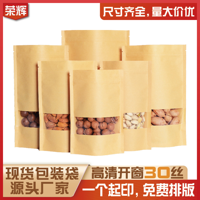 크래프트 종이 자체 밀봉 가방 두꺼운 창 크래프트 종이 봉투 너트 식품 포장 가방 차 밀봉 가방스토어 가기