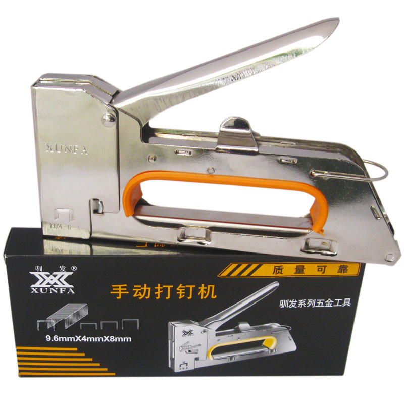 • 该打钉枪主要主要适用于:装潢,招牌。为沙发,椅子装上坐垫或套、弹簧等。书架、厨架的装饰。壁橱、衣橱等的里衬。美术用品。