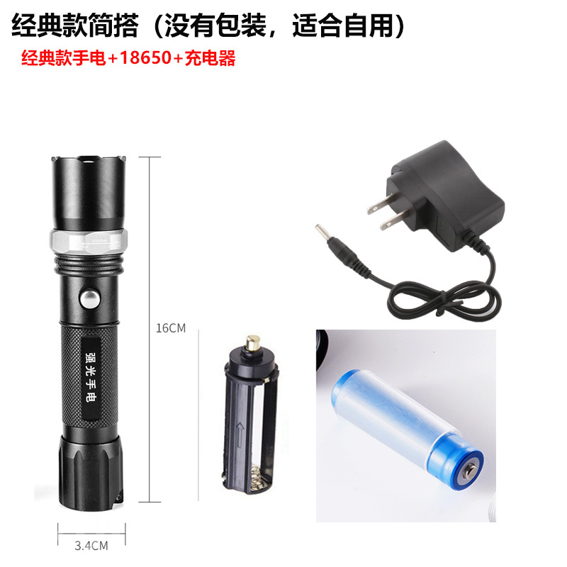 줌 기능이 있는 강력한 LED 손전등, 사이클링용 조광 가능 야외 조명 충전 세트, 알루미늄 합금 제조업체 도매스토어 가기