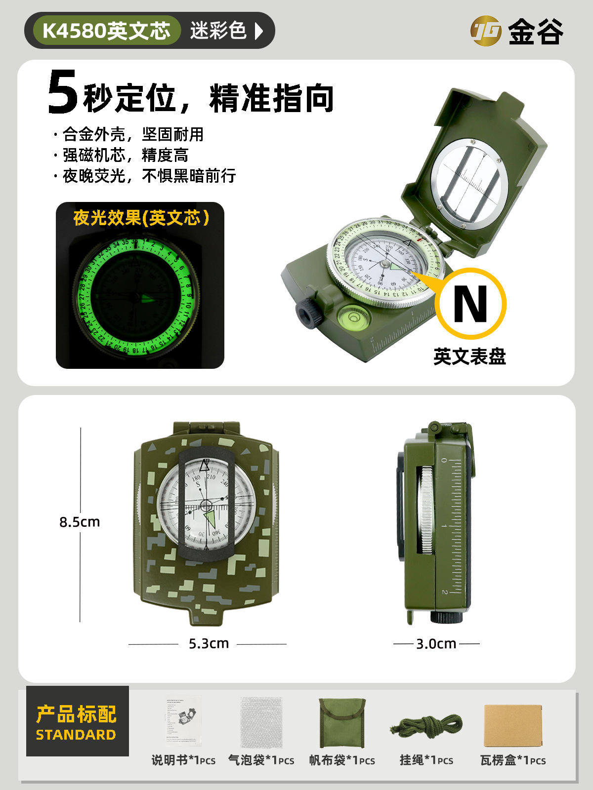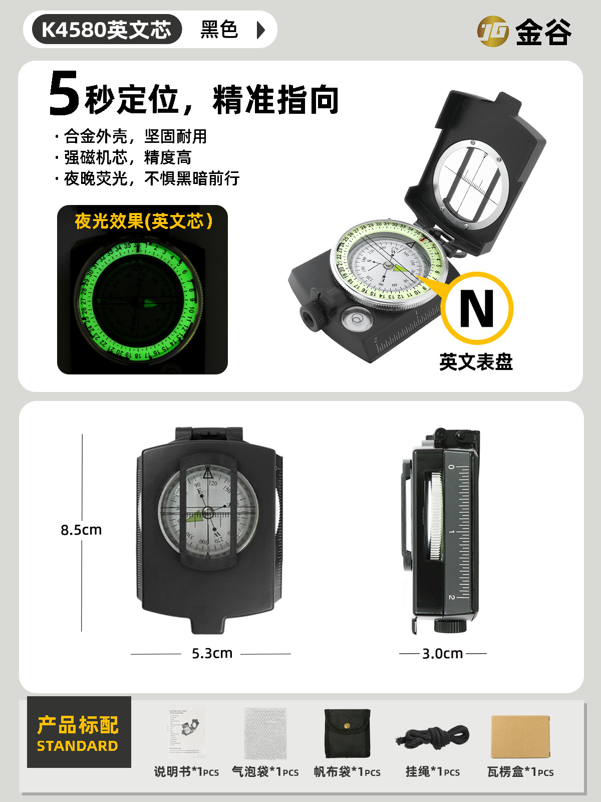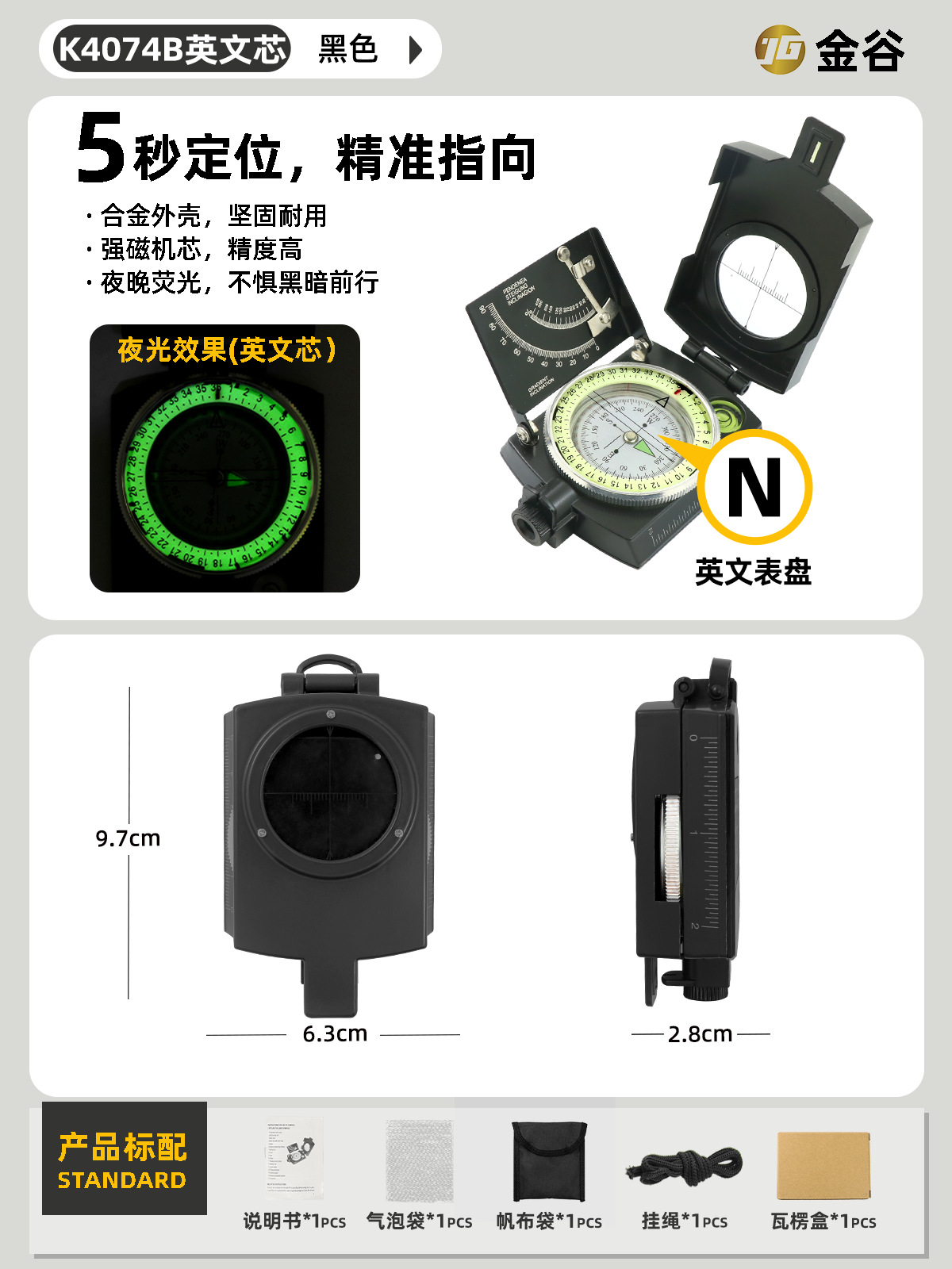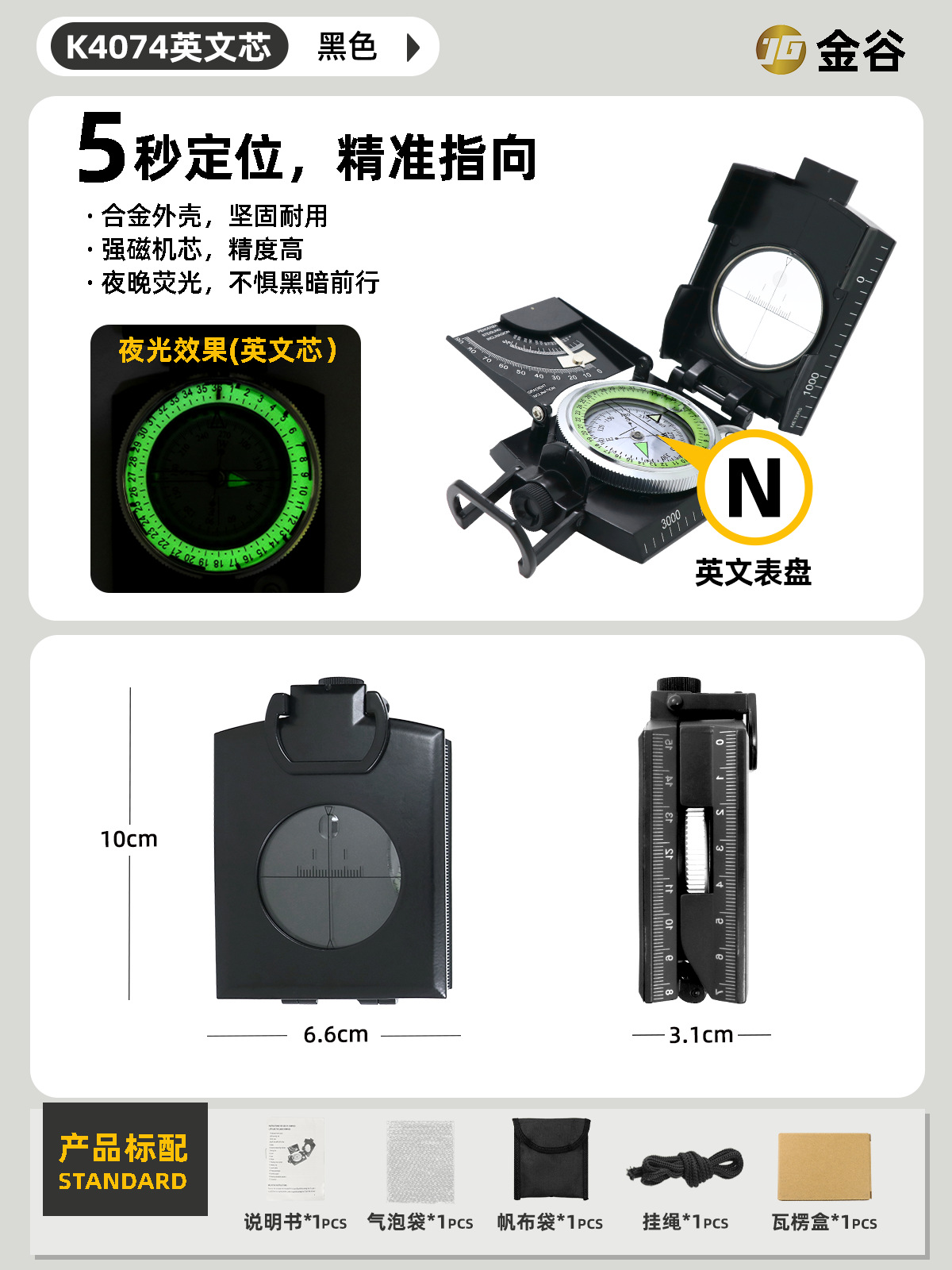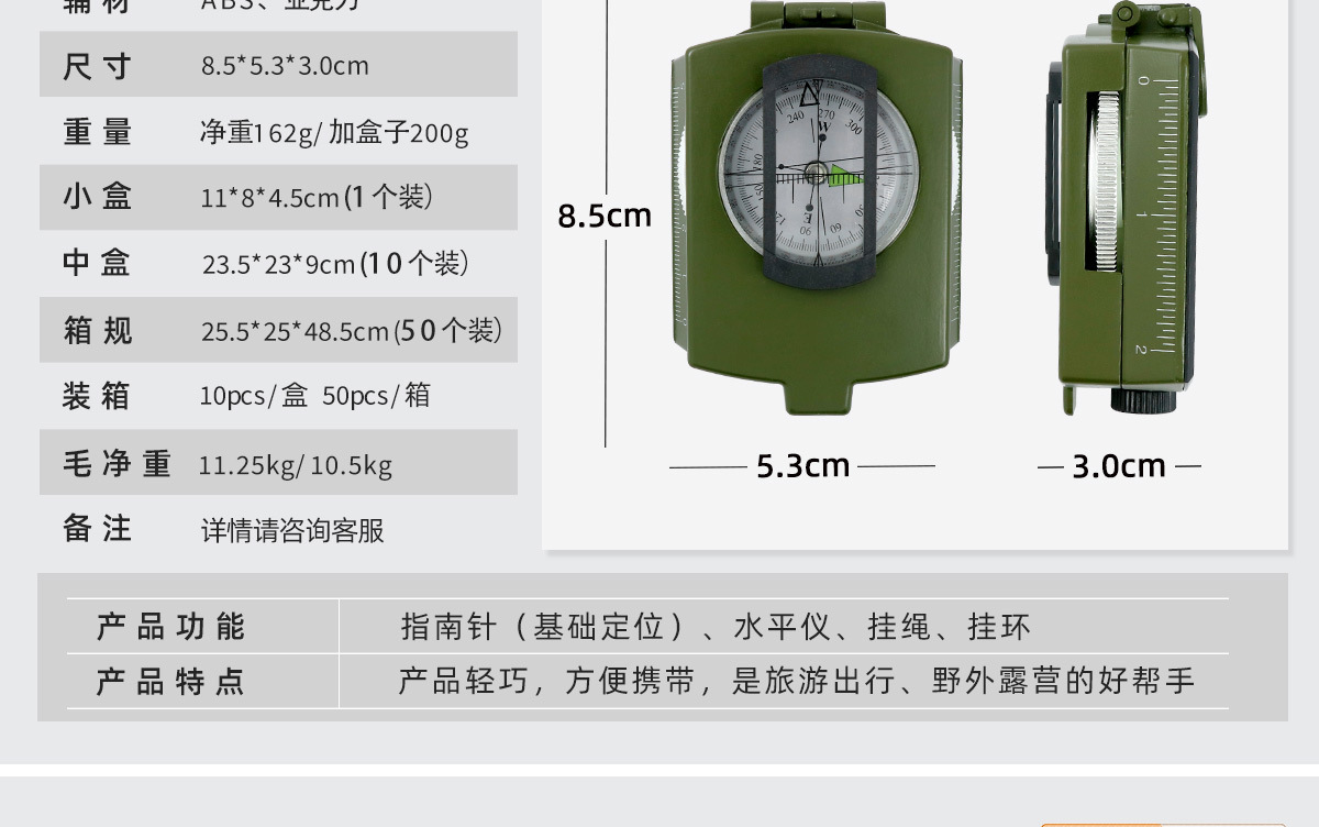 소스 제조업체 미국 야외 다기능 나침반 북쪽 나침반 고정밀 전문 캠핑 발광 나침반 북쪽