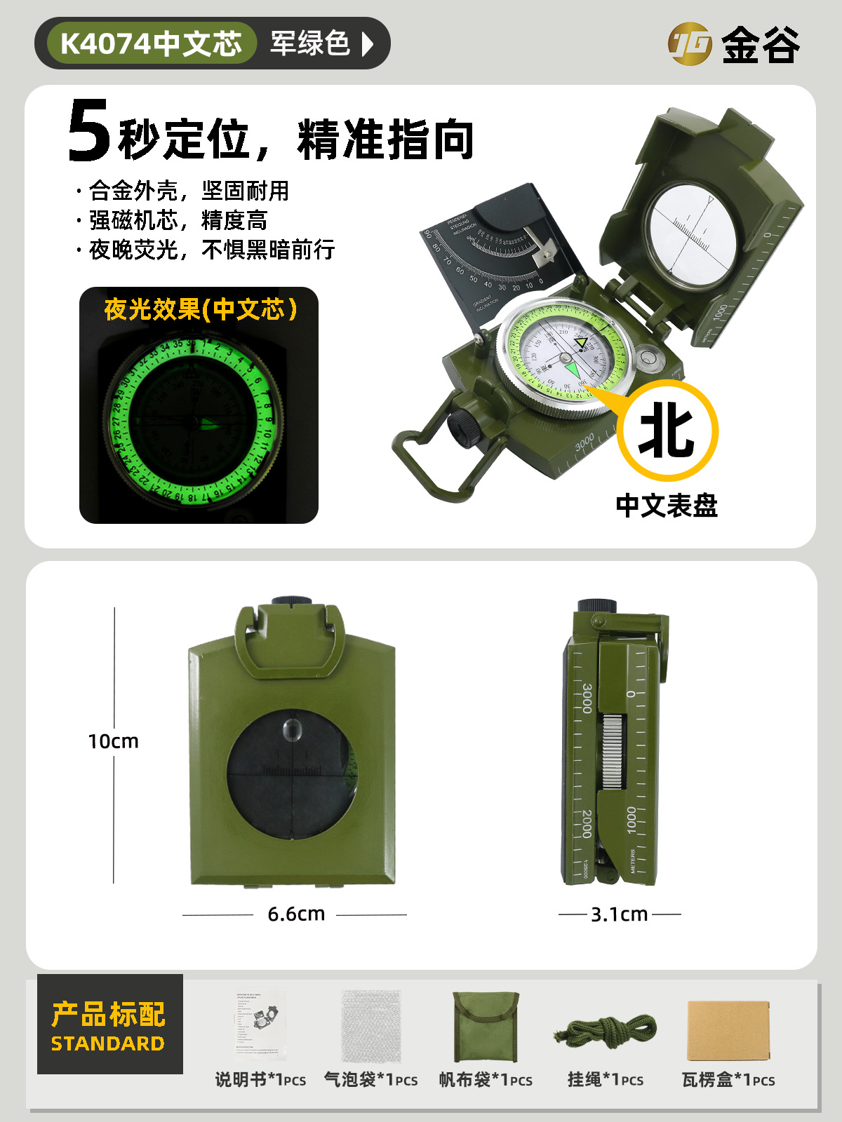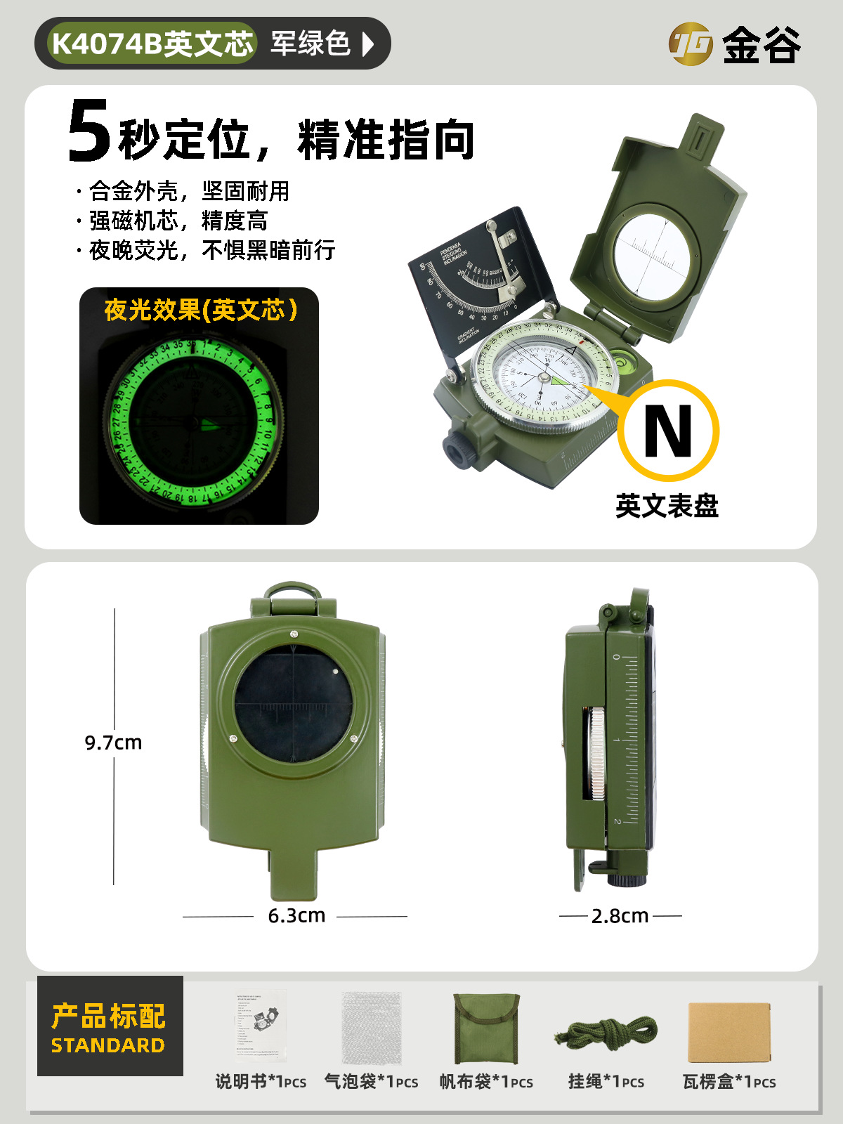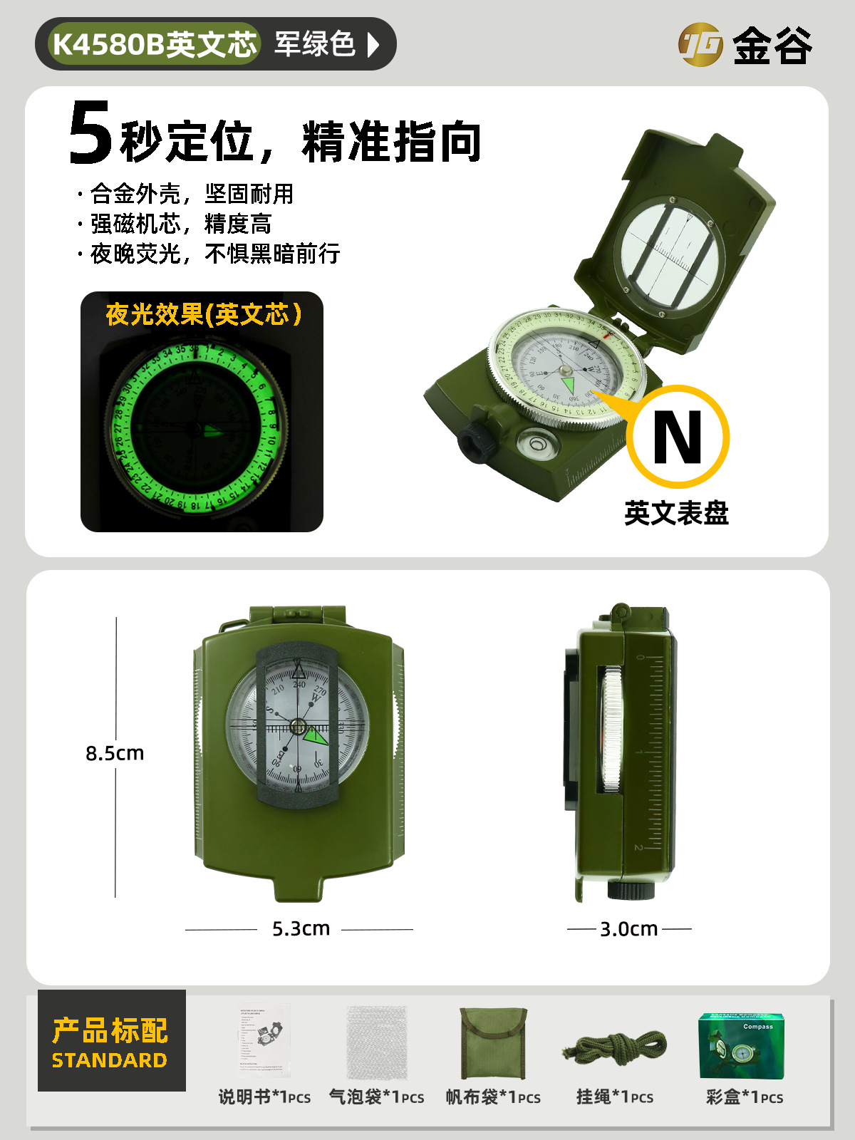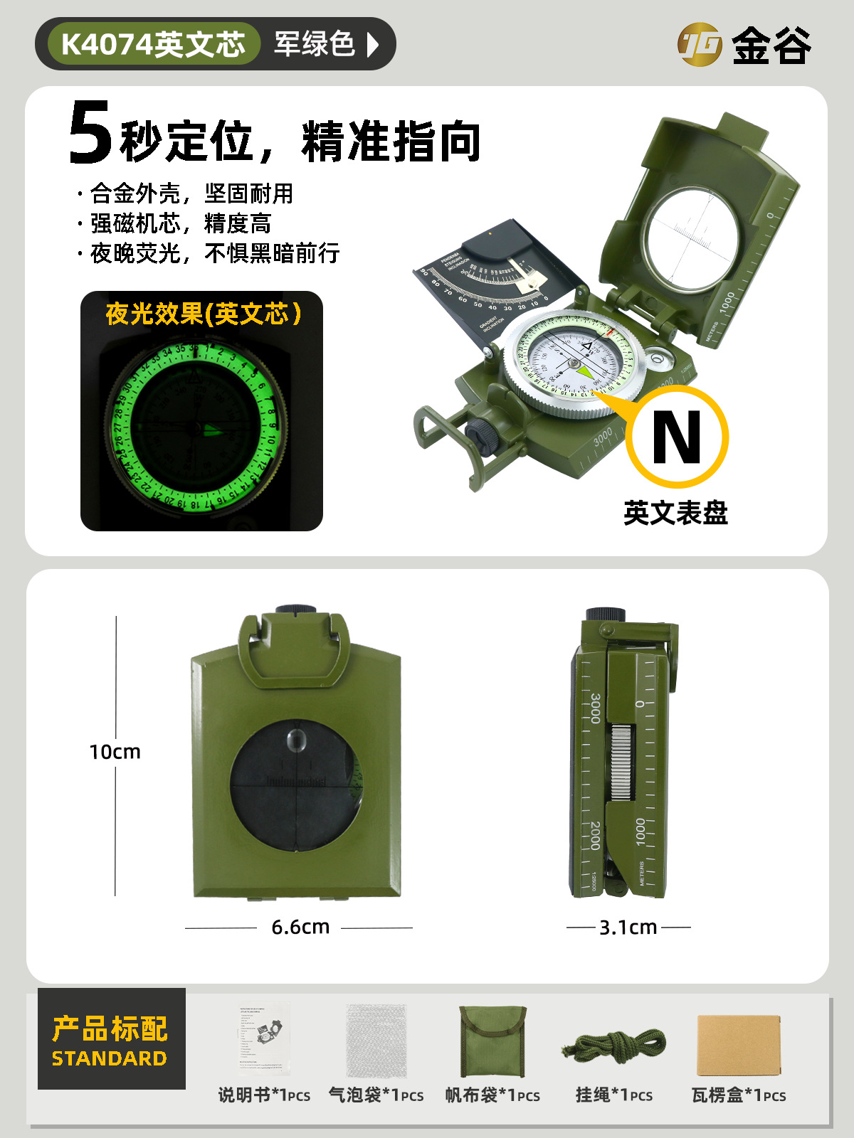 소스 제조업체 미국 야외 다기능 나침반 북쪽 나침반 고정밀 전문 캠핑 발광 나침반 북쪽