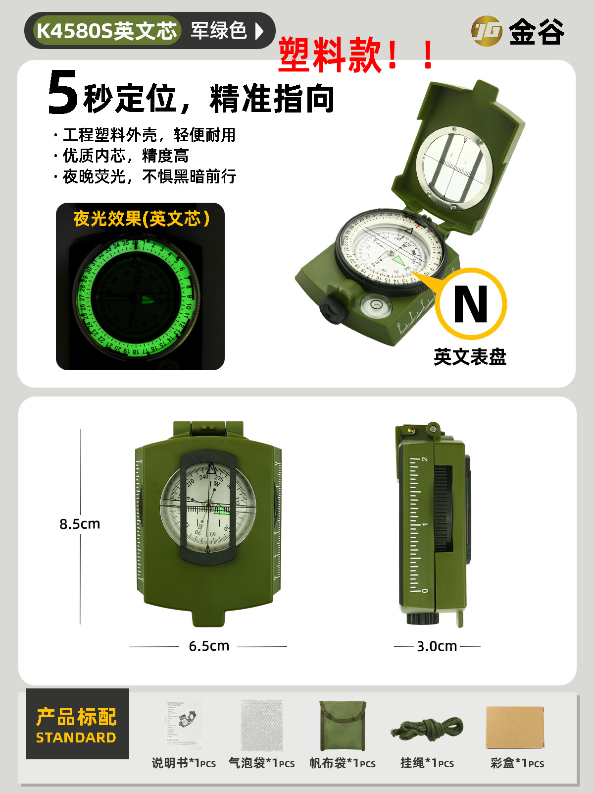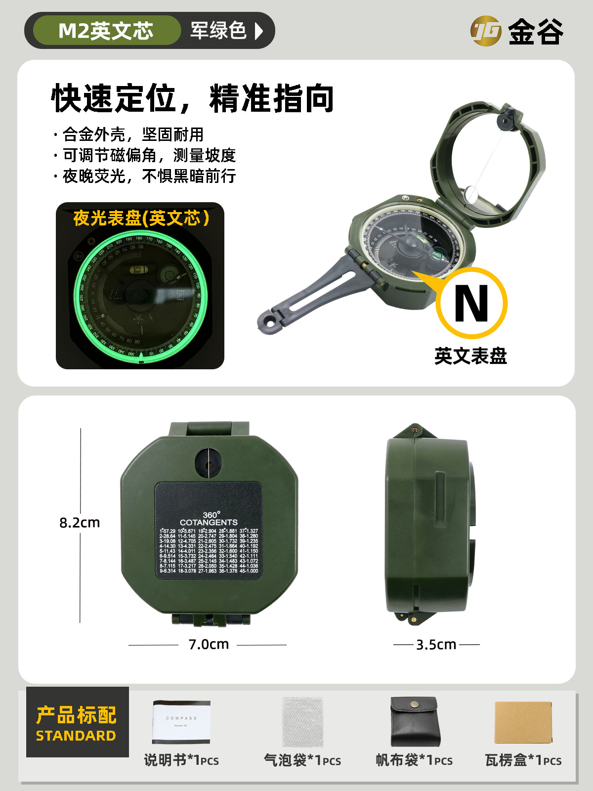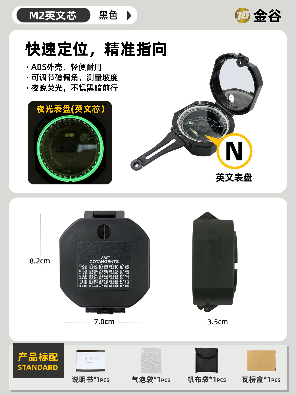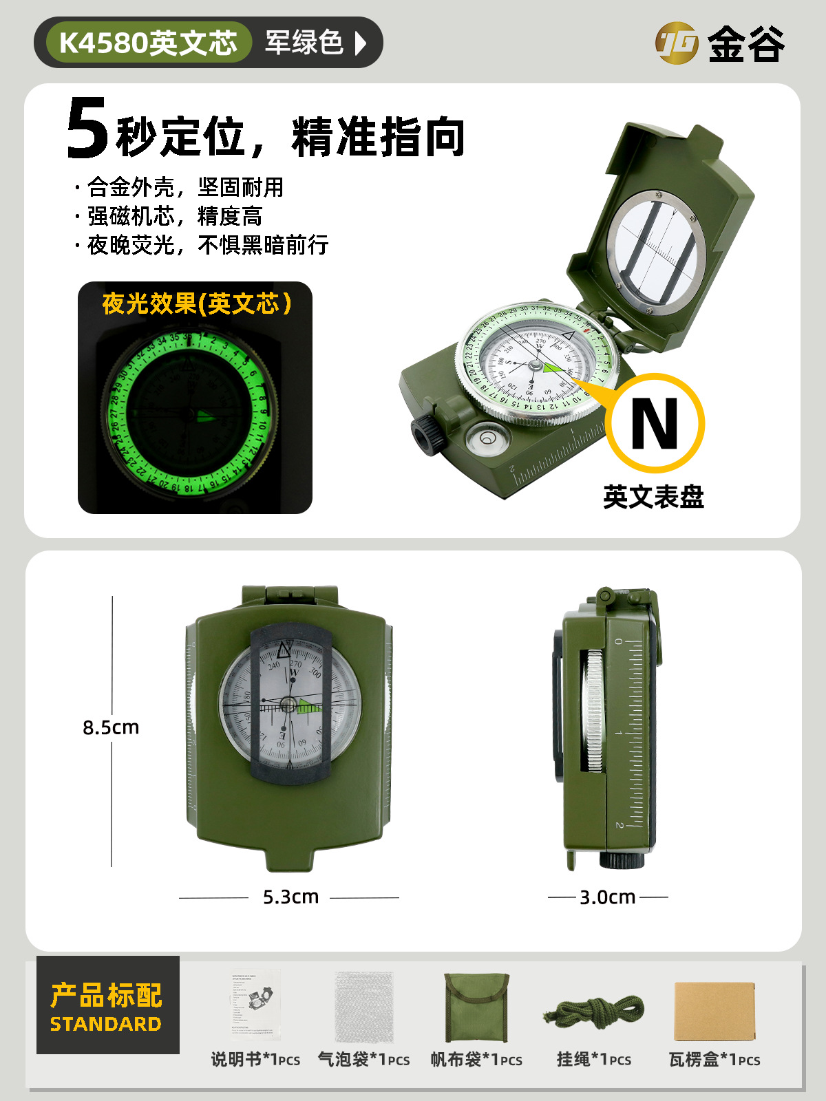 소스 제조업체 미국 야외 다기능 나침반 북쪽 나침반 고정밀 전문 캠핑 발광 나침반 북쪽