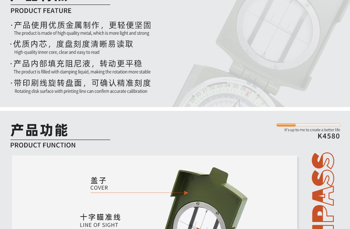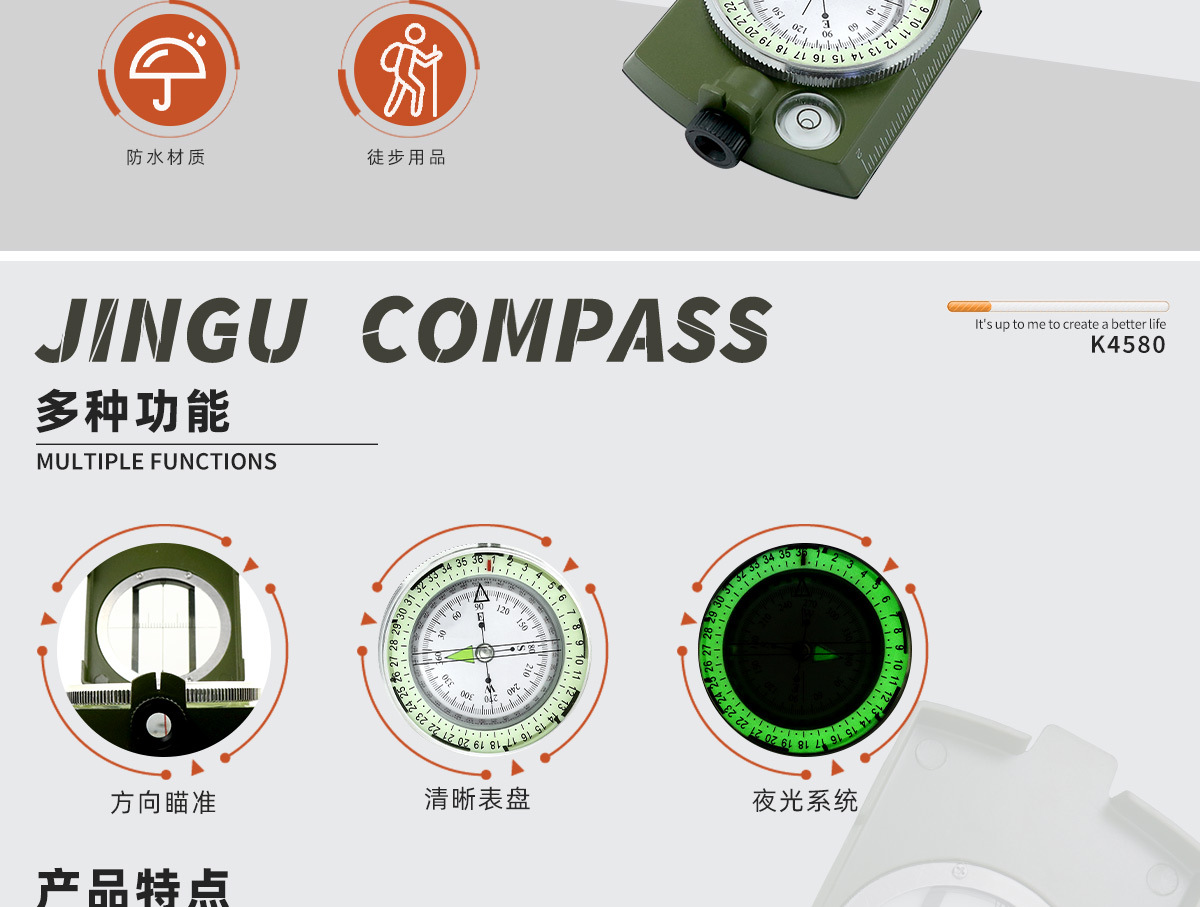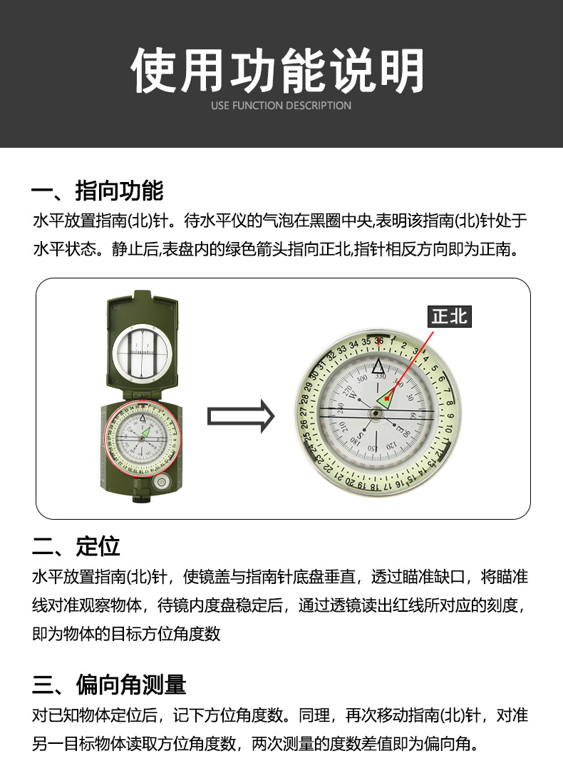 소스 제조업체 미국 야외 다기능 나침반 북쪽 나침반 고정밀 전문 캠핑 발광 나침반 북쪽스토어 가기