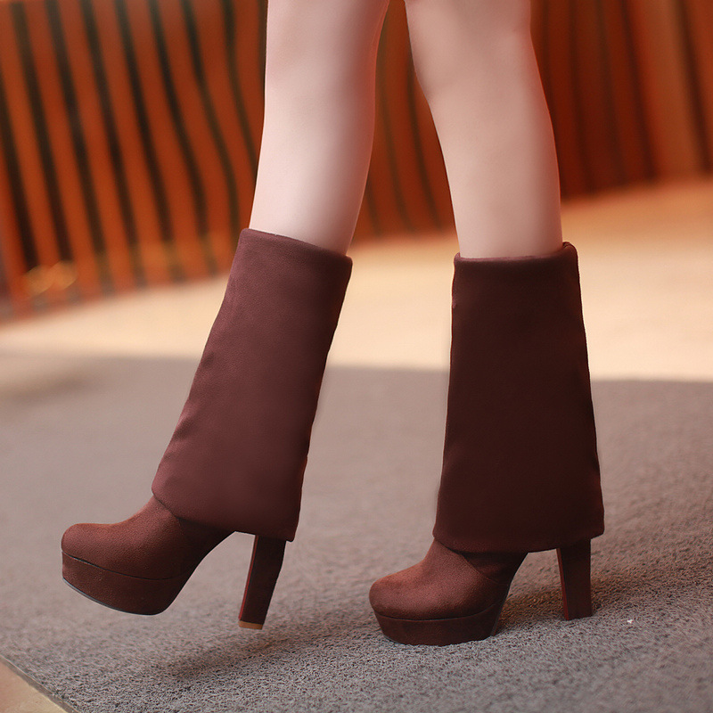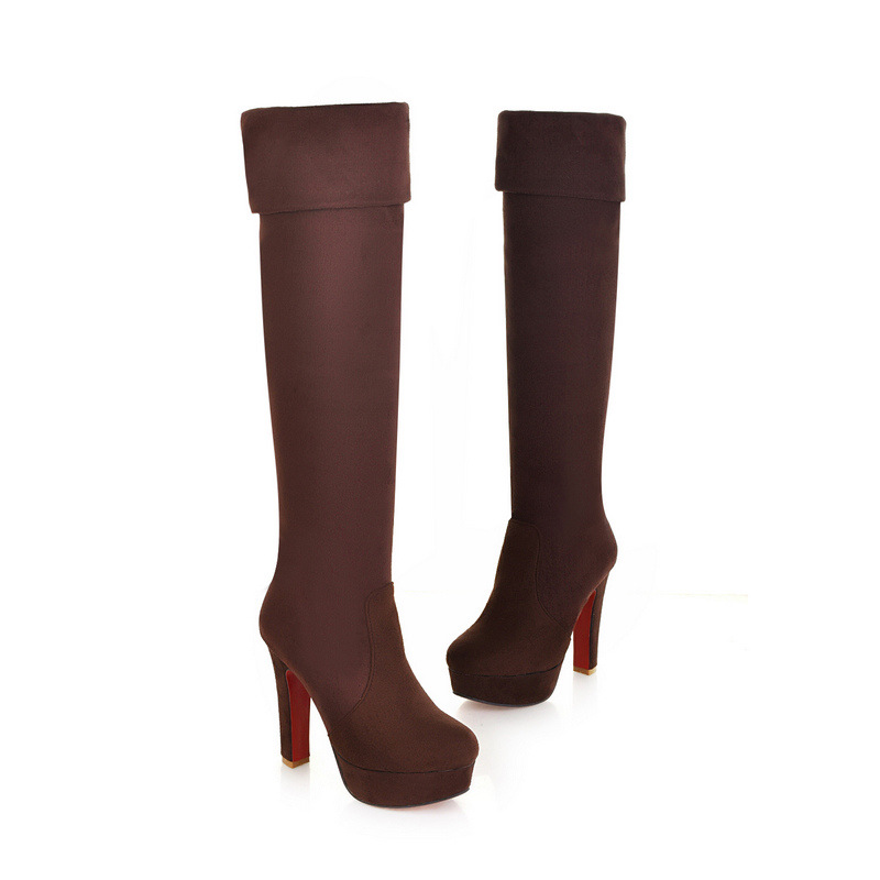 장기 새로운 스트레치 부츠 스웨이드 워터 플랫폼 두꺼운 힐 부츠 봄과 가을 여성 신발 겨울 착용 기질 무릎 높이 부츠