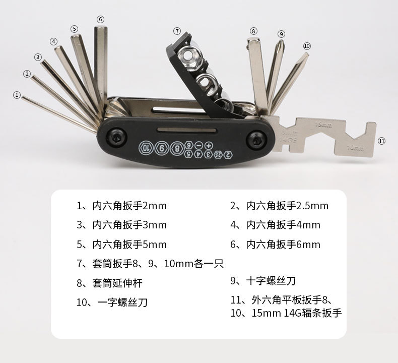 15-in -1 산악 자전거 다기능 공구/내외부 육각 드라이버 렌치/콤비네이션 라이딩 장비