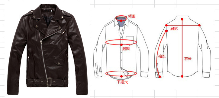 *本厂几款皮衣版型大小比较:B03>B01>B18>B02>B07(偏小一个尺码)