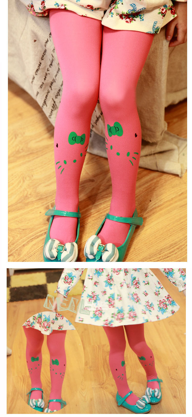 봄과 가을 벨벳 KT 고양이 팬티 스타킹 가을과 겨울 소녀 꽃 새끼 고양이 사탕 색 도매스토어 가기