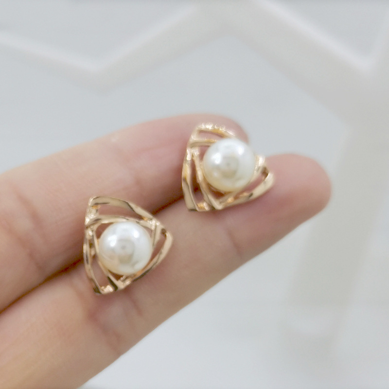 한국 귀여운 우아한 진주 귀걸이 여성용 중공 삼각형 기하학 귀걸이 간단한 모든 일치 학생 귀 액세서리