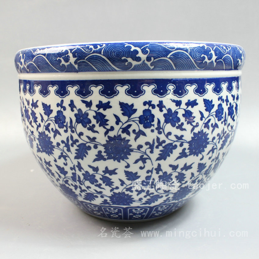 Jingdezhen 파란색과 흰색 도자기 고전 어항 물 탱크 화분 Zhilian 대형 탱크 물 얕은 공장 도매 골동품에 싸여스토어 가기