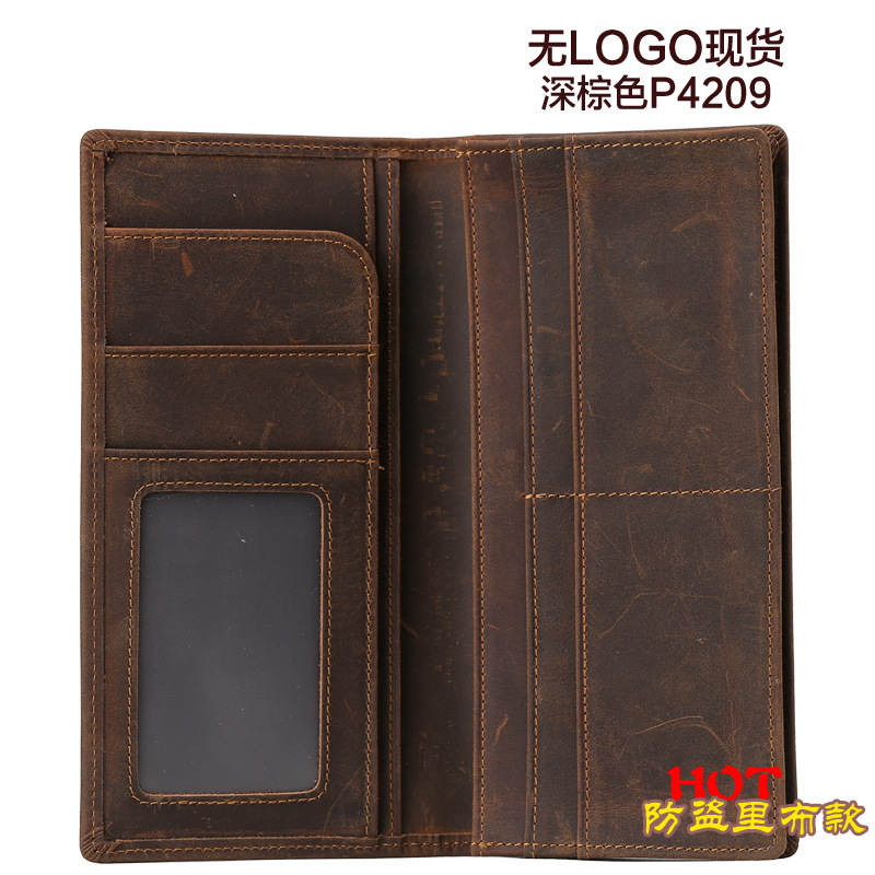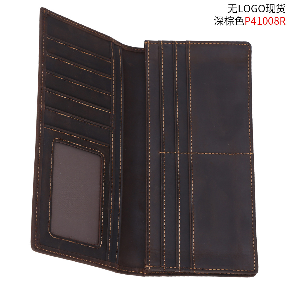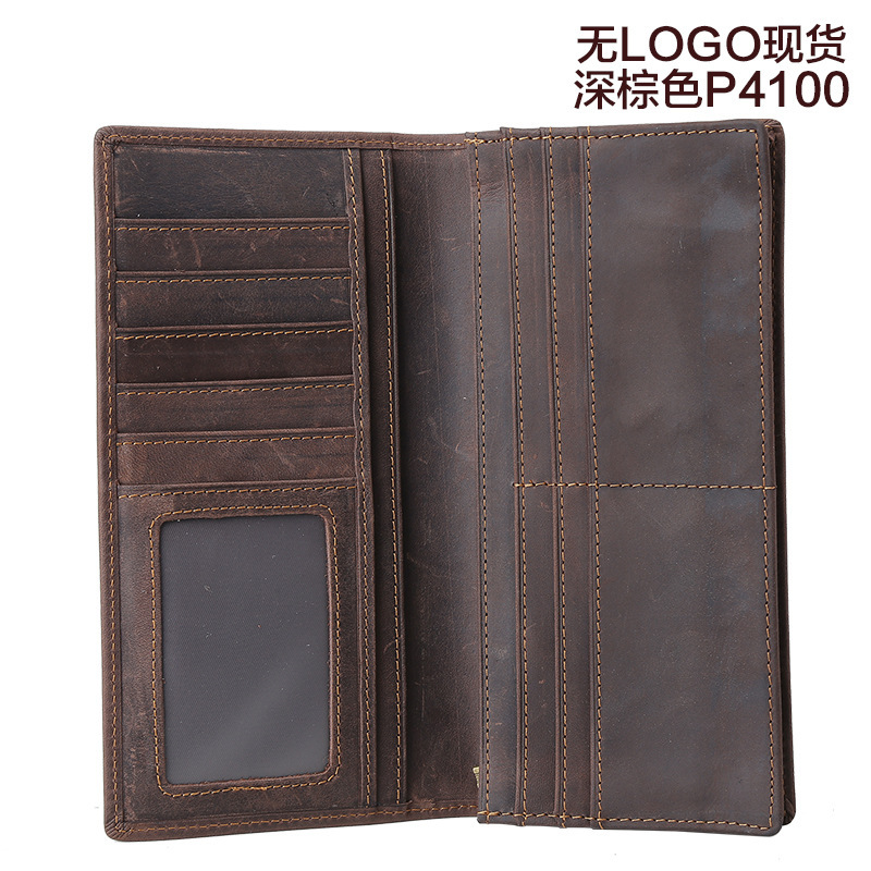 트렌디 한 암소 빈티지 미친 말 가죽 남성용 긴 지갑 탑 레이어 소가죽 클러치 비즈니스 지갑 가죽 남성 지갑스토어 가기