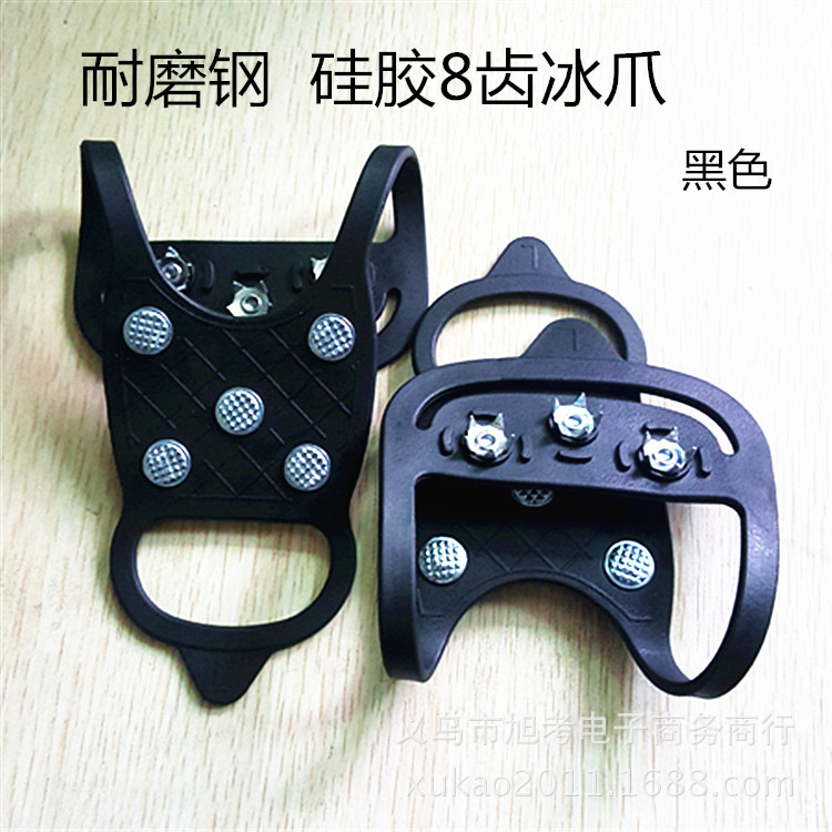 现在上班族基本上穿的都是高档皮鞋,一遇下下雪鞋质量就会受到影响,有时还会脱胶变形;还有,游客在旅途中遇到下雪也是很麻烦的事。 冰爪有效防止湿滑地面、冰雪路面等特殊场所的滑倒,摔伤!他以不变形、不脱落、不打滑,可反复使用,深受中老年人、妇女以及儿童、消防、攀岩、运输、搬运等特种行业的从业人士及户外活动者的喜爱。