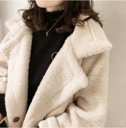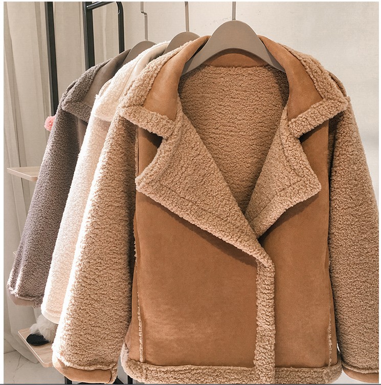 겨울 신상품 라지 라펠 램스울 코트 여성용 루즈한 BF 스타일 모피 여성용 원피스 스웨이드 바이커 재킷스토어 가기