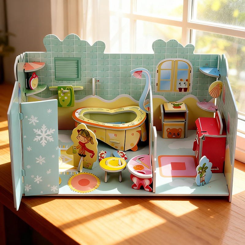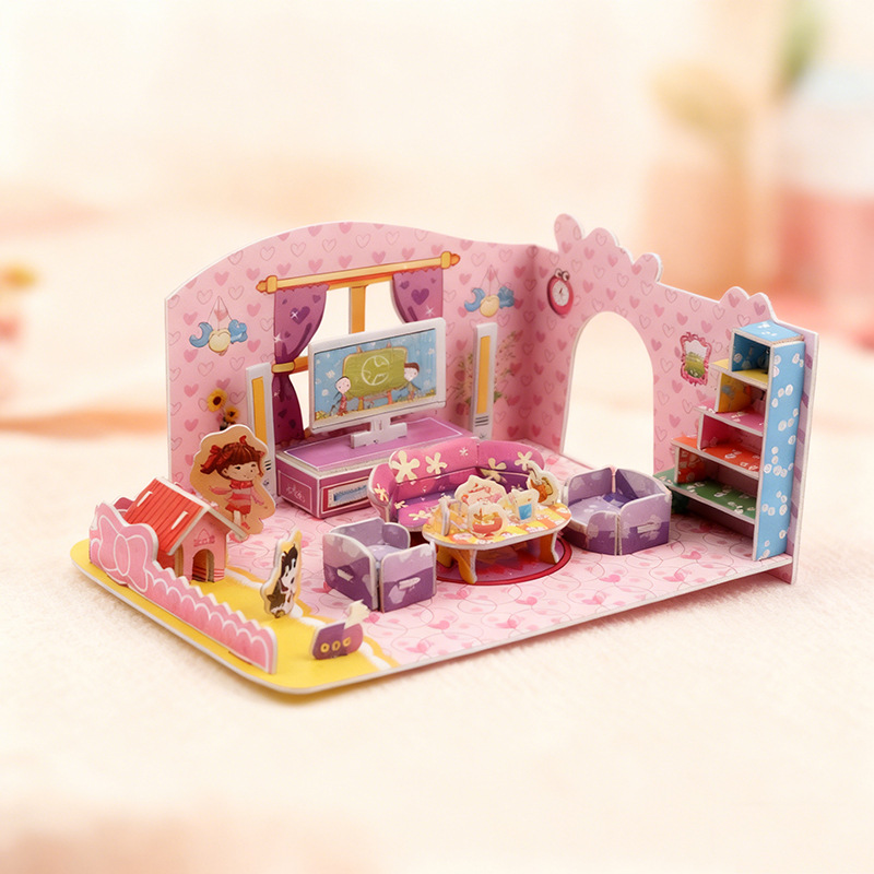 대형 4 피스 3d 3d 퍼즐 어린이 6-10 세 교육 장난감 종이 퍼즐 3d 3d 대형 수제 모델스토어 가기