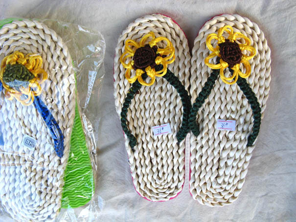 29421 해바라기 꽃 짚 짠 슬리퍼 여성용 헤링탑 야외 고무 신발 옥수수 난로 손으로 짠 밀짚 신발스토어 가기