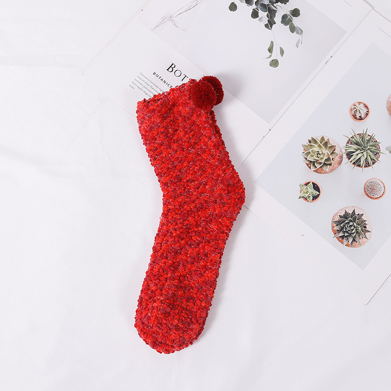 가을과 겨울 새로운 일본 산호 양털 양말 홈 바닥 양말 여성 케이크 양말 진주 양털 양말 선물 상자