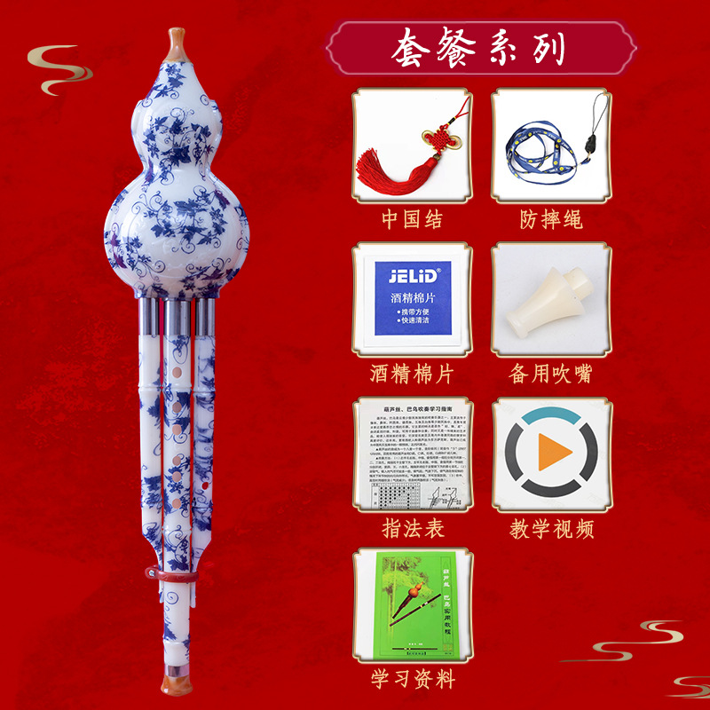 • [낙하 방지 헤밍] 모조 파란색과 흰색 도자기 B-톤 + 가죽 상자 + 교과서 + 선물