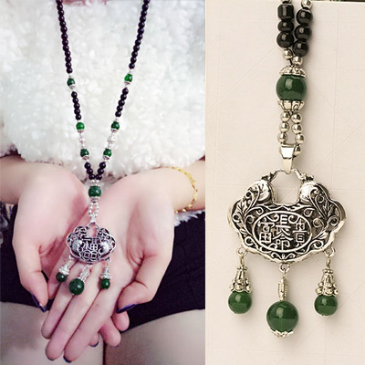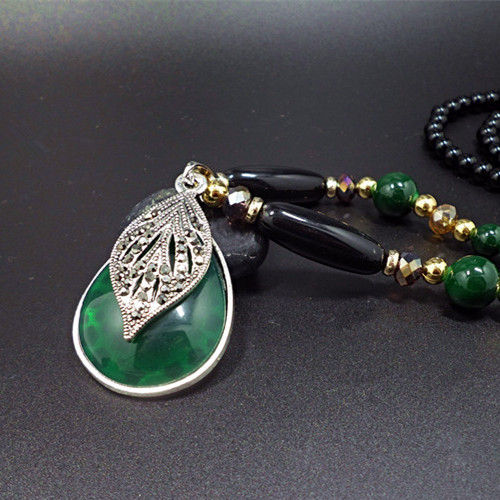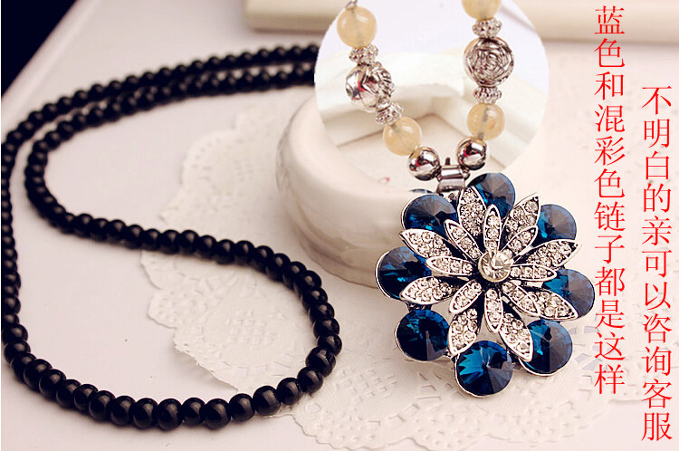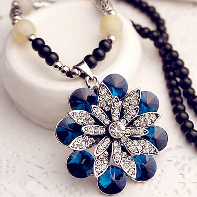 유럽과 미국 패션 긴 스웨터 체인 입체 꽃잎 오팔 목걸이 가을과 겨울 빈티지 펜던트 보석 도매스토어 가기
