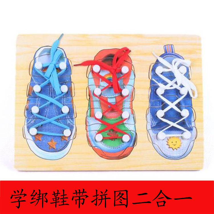 어린이 조기 교육 교육 나무 장난감 신발 끈 퍼즐 학습 신발 끈 장난감 신발 끈 보드 졸업 선물