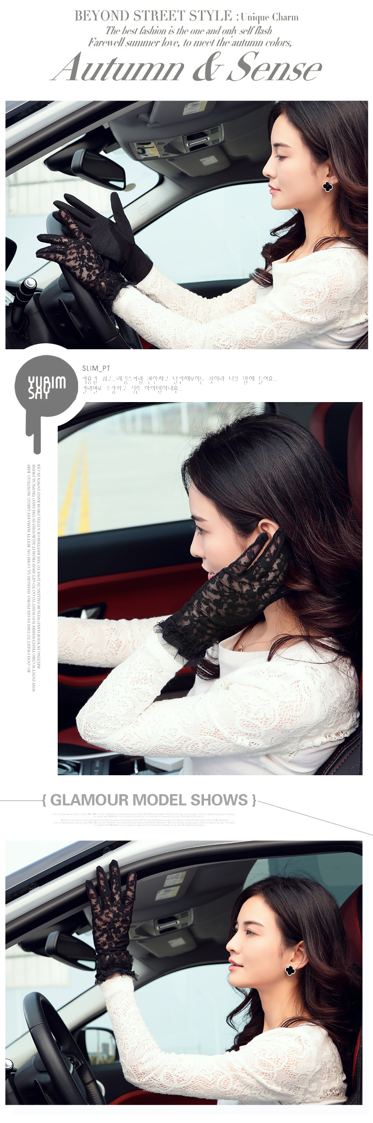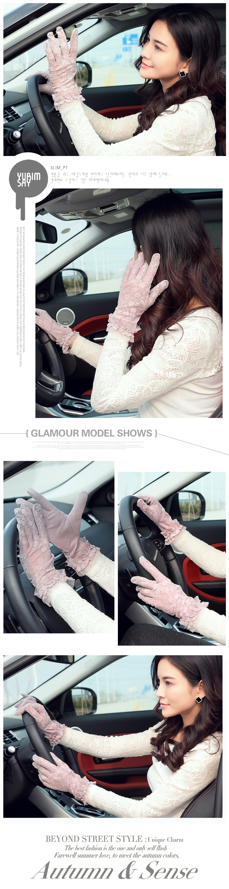 부타 정품 태양 보호 레이스 장갑 여성 패션 여성 운전 얇은 미끄럼 방지 장갑 PT9040