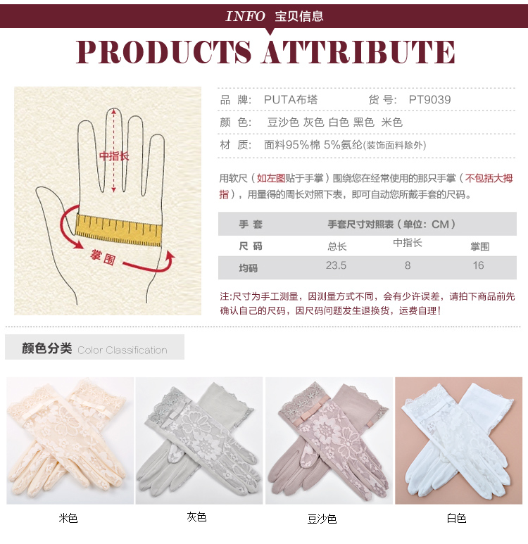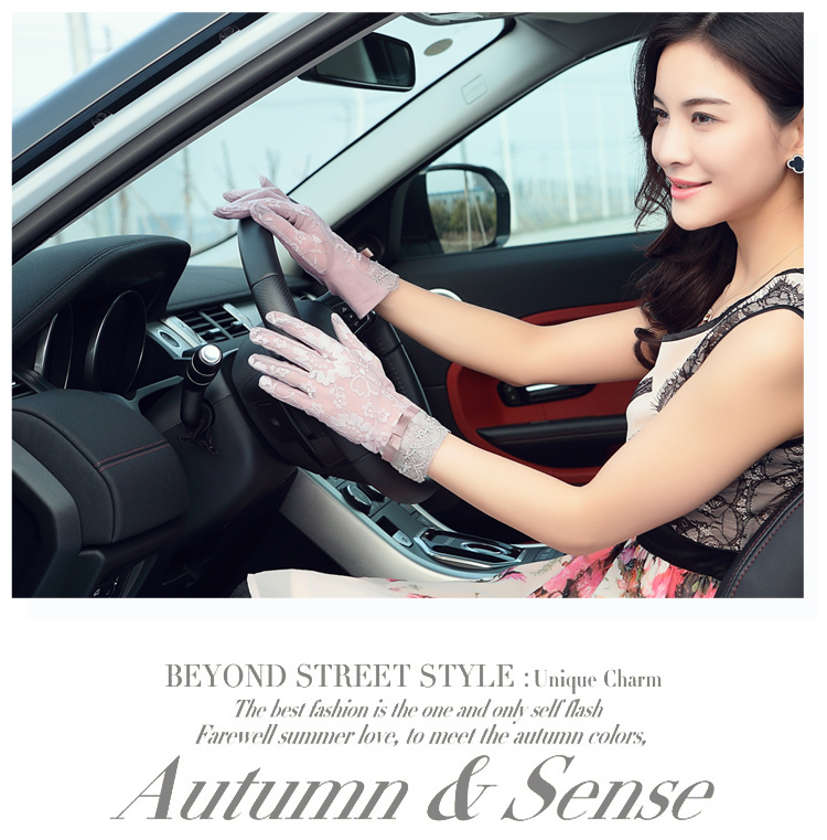 Buta 여름 여성용 운전 태양 보호 장갑 귀여운 한국 스타일 유행 짧은 레이스 손가락 장갑 여성용 PT9039스토어 가기