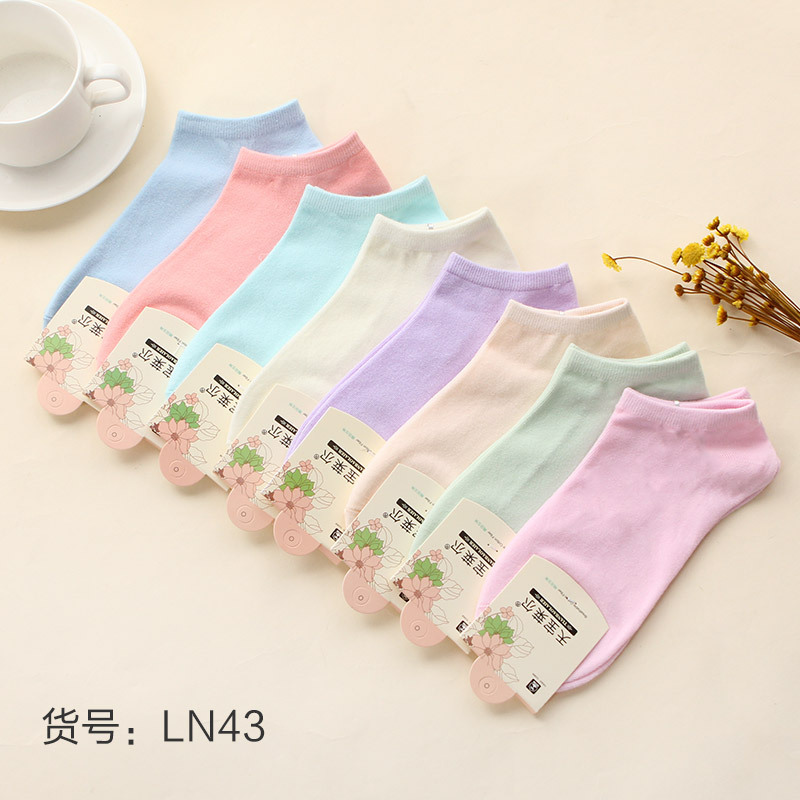 Tianbao 라일 양말 여성용 보트 양말 한국식 일본어 한국식 여성용 짧은 양말 봄과 가을과 여름 여성용 양말 단색 캔디 컬러