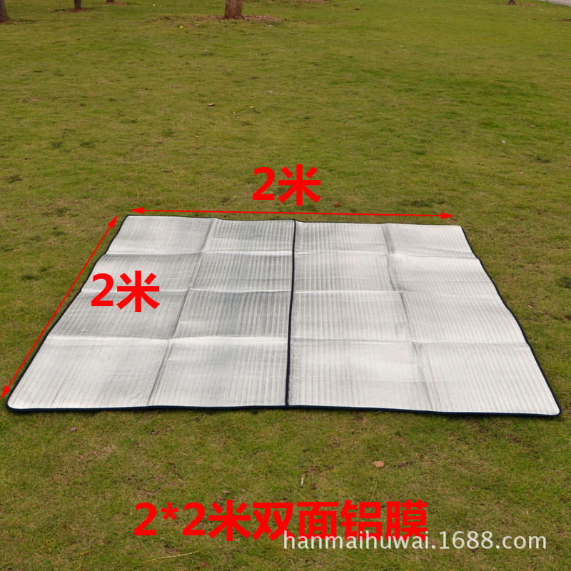 下图为2*2m的铝膜垫在帐篷内及草地上使用效果