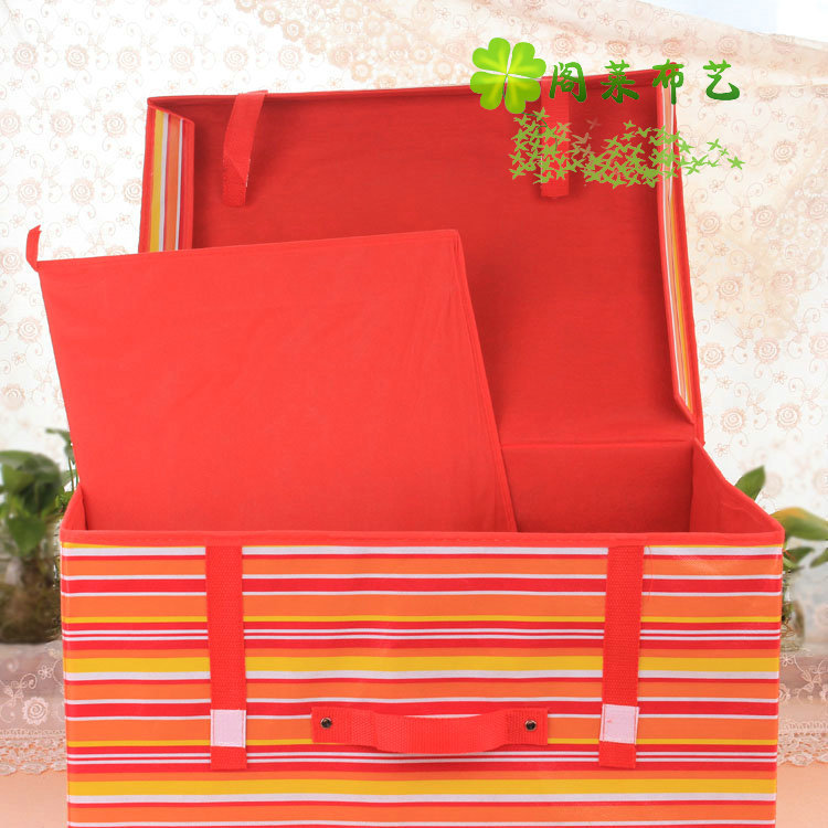 本产品材料主要是:防水覆膜无纺布、环保纸板;防水防尘,颜色多样,轻便简单,携带方便;平时放室内装一些换季衣物、玩具、棉被等生活用品,起到清理整洁室内环境,干净利落,温馨舒适;不用时可以折叠存放,节省室内空间;质地良好,经济实用,价廉物美,欢迎选购!